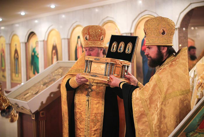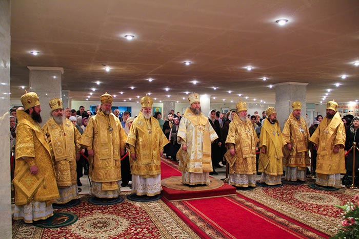Главе Православной Церкви Казахстана сослужили: члены Синода Казахстанского Митрополичьего Округа - архиепископ Чимкентский и Таразский Елевферий, епископ Петропавловский и Булаевский Гурий, епископ Костанайский и Рудненский Анатолий, Управляющий делами Православной Церкви Казахстана епископ Каскеленский Геннадий, епископ Павлодарский и Экибастузский Варнава, епископ Карагандинский и Шахтинский Севастиан, епископ Усть-Каменогорский и Семипалатинский Амфилохий, епископ Кокшетауский и Акмолинский Серапион; благочинный храмов Астаны архимандрит Сергий (Карамышев); настоятель храма в честь иконы Божией Матери «Всех скорбящих Радость» г. Алма-Аты протоиерей Евгений Воробьев; клирик алма-атинского Покровского храма протоиерей Александр Милованов; руководитель информационного отдела Митрополичьего Округа протоиерей Евгений Иванов; духовник астанайского женского монастыря в честь иконы Божией Матери «Взыскание погибших» иеромонах Модест (Дроздов); секретарь Карагандинской епархии протоиерей Владимир Фрейганг; ключарь Успенского собора столицы протоиерей Димитрий Байдек; руководитель протокола митрополита протодиакон Роман Головин; клирик Свято-Никольского собора города Алма-Аты протодиакон Георгий Засыпкин; духовенство астанайских храмов.