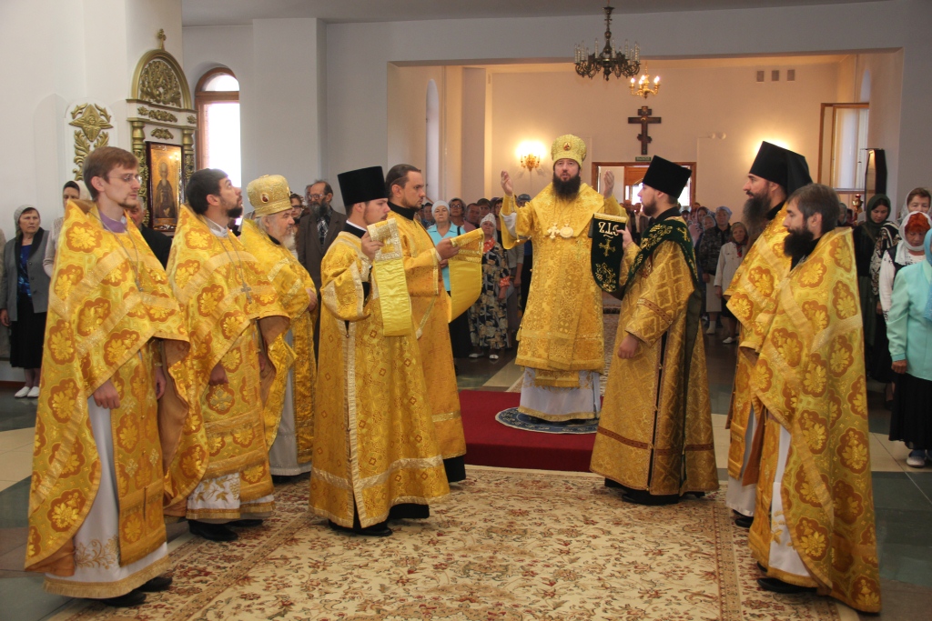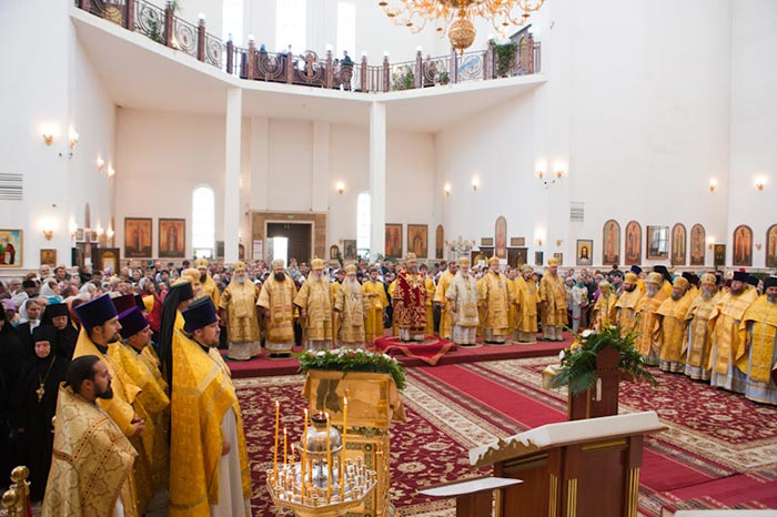 В Успенском кафедральном соборе Астаны состоялась Божественная Литургия, которую совершил Глава Митрополичьего Округа Русской Православной Церкви в Республике Казахстан митрополит Астанайский и Казахстанский Александр в сослужении: архиепископа Уральского и Актюбинского Антония, архиепископа Чимкентского и Таразского Елевферия, епископа Петропавловского и Булаевского Гурия, епископа Костанайского и Рудненского Анатолия; викария Ровенской епархии, епископа Дубновского Нектария; викария Астанайской епархии, епископа Каскеленского Геннадия, Управляющего делами Казахстанского Митрополичьего Округа; епископа Павлодарского и Экибастузского Варнавы, епископа Карагандинского и Шахтинского Севастиана, епископа Усть-Каменогорского и Семипалатинского Амфилохия; благочинного храмов Алма-Аты протоиерея Валерия Захарова, благочинного храмов Астаны архимандрита Сергия (Карамышева); духовника Карагандинского монастыря в честь Рождества Богородицы архимандрита Петра (Горошко); благочинного храмов города Кокшетау протоиерея Василия Качанкина, благочинного храмов города Петропавловска протоиерея Сергия Снопкова, благочинного храмов Караганды протоиерея Михаила Патрикеева; благочинного приходов города Ярославля иерея Александра Пчелкина (Ярославская митрополия); руководителей отделов Казахстанского Митрополичьего Округа, председателей епархиальных комиссий и священнослужителей казахстанских епархий.