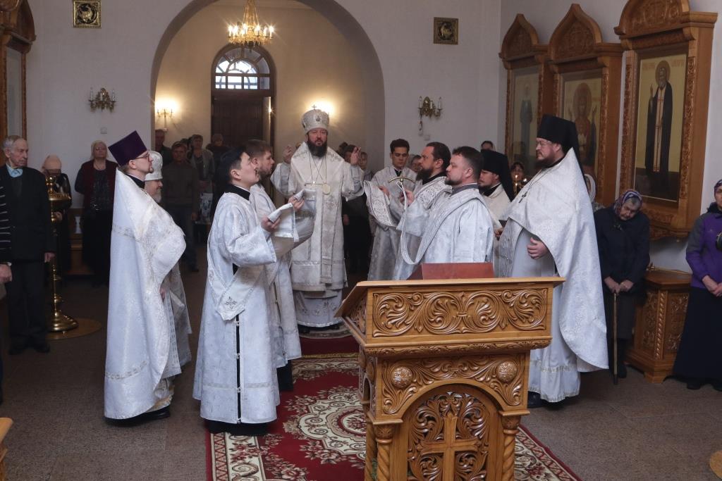 Владыке епископу сослужили духовник епархии архимандрит Спиридон (Теплухин), ключарь Андреевского собора иеромонах Никодим (Авдеев), клирик собора иерей Алексий Клепиков, секретарь Управляющего епархией иеромонах Силуан (Магилев), иеромонах Назарий (Шелыгин), секретарь епархии диакон Илия Кван, протодиакон Георгий Засыпкин, протодиакон Андрей Дудник, диакон Владимир Лаврешин.