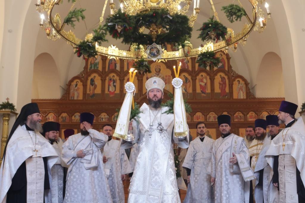 В праздничную ночь Рождества Христова епископ Усть-Каменогорский и Семипалатинский Амфилохий совершил Божественную Литургию святителя Иоанна Златоуста в кафедральном соборе во имя святого апостола Андрея Первозванного города Усть-Каменогорска.
