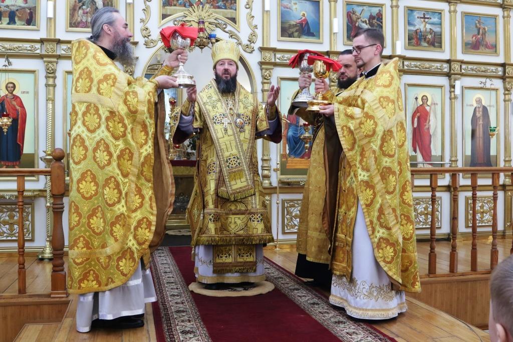 Управляющий Усть-Каменогорской епархией возглавил служение Божественной литургии святителя Иоанна Златоуста в Андреевском кафедральном соборе. Его Преосвященству сослужили: духовник Усть-Каменогорской епархии архимандрит Спиридон (Теплухин), ключарь Андреевского собора иеромонах Никодим (Авдеев), клирик собора иерей Константин Дьяков; секретарь епархии диакон Илия Кван, протодиакон Андрей Дудник, диакон Владимир Лаврешин.