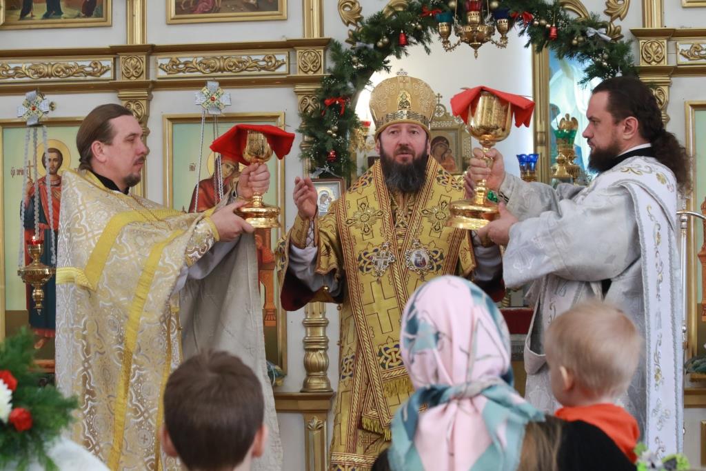 Преосвященнейший епископ Усть-Каменогорский и Семипалатинский Амфилохий посетил с Архипастырским визитом храм в честь Покрова Божией Матери, где в день Крещенского сочельника возглавил служение особого предпраздничного богослужения – Царских часов и Великой вечерни в соединении с Божественной Литургией святителя Василия Великого.