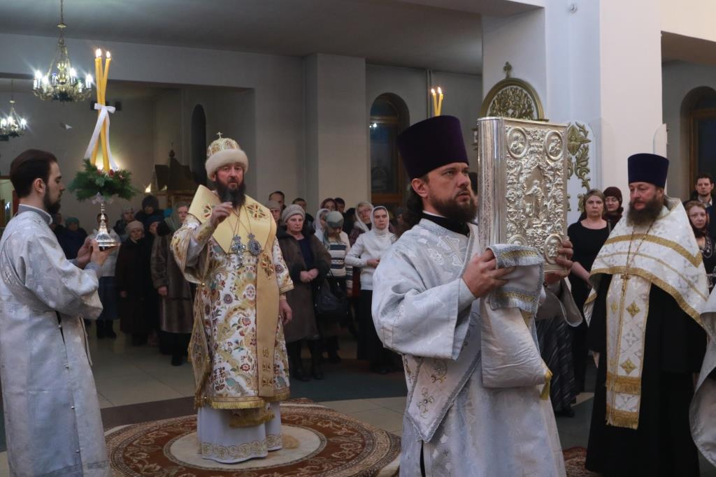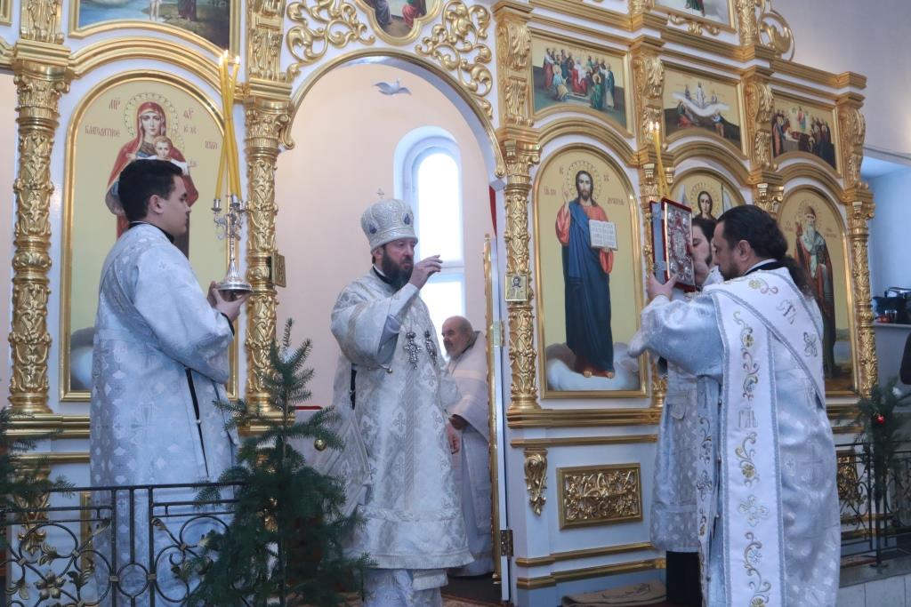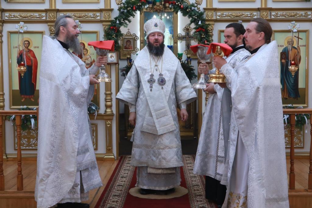 Преосвященнейший епископ Усть-Каменогорский и Семипалатинский Амфилохий возглавил служение особенных уставных чинопоследований Навечерия Рождества Христова – Божественной Литургии святителя Иоанна Златоуста и великой вечерни в кафедральном соборном храме во имя святого апостола Андрея Первозванного города Усть-Каменогорска.