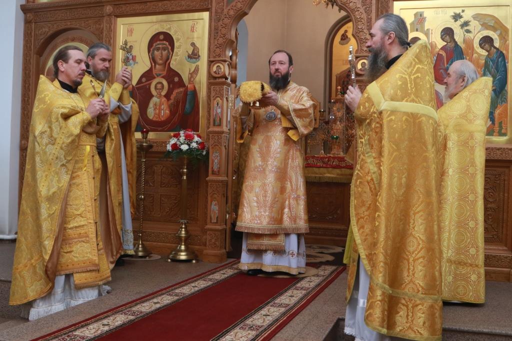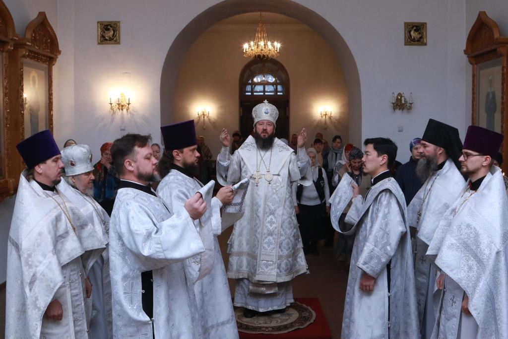 Управляющий Усть-Каменогорской и Семипалатинской епархией Преосвященнейший епископ Амфилохий возглавил служение Божественной Литургии святителя Иоанна Златоуста в Троицком соборе Усть-Каменогорского Свято-Троицкого мужского монастыря. Архипастырю сослужили: духовник епархии архимандрит Спиридон (Теплухин), ключарь кафедрального собора иеромонах Никодим (Авдеев), клирики Андреевского кафедрального собора иерей Алексий Клепиков и иерей Константин Дьяков, секретарь епархии диакон Илия Кван, протодиакон Андрей Дудник, диакон Владимир Лаврешин.
