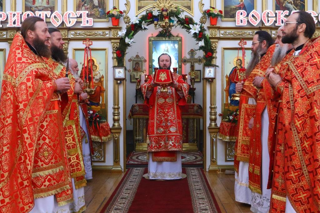 В день престольного праздника второго кафедрального собора Усть-Каменогорской и Семипалатинской епархии Преосвященнейший епископ Амфилохий возглавил служение Божественной Литургии святителя Иоанна Златоуста пасхальным чином в соборе в честь Воскресения Христова города Семипалатинска. Владыке епископу сослужили: благочинный Семипалатинского церковного округа митрофорный протоиерей Феодор Проскурин, ключарь Воскресенского собора иерей Евгений Потылицын, клирик собора иерей Евгений Хохряков, протодиакон Андрей Дудник, диакон Николай Белоконь, иеродиакон Мефодий (Шевчук), секретарь епархии диакон Илия Кван.