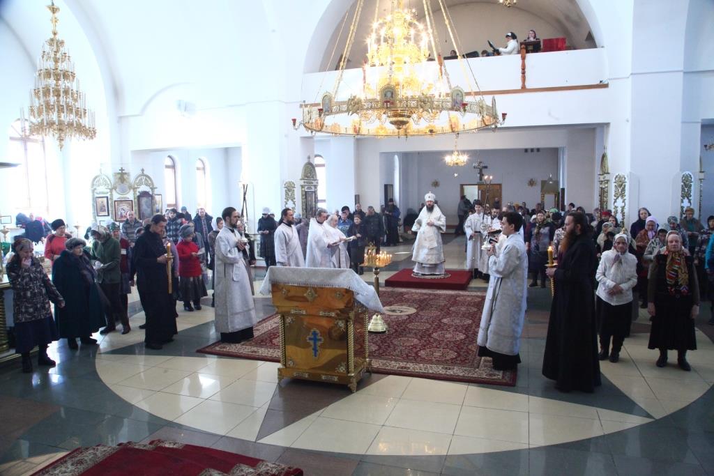 Преосвященнейший епископ Усть-Каменогорский и Семипалатинский Амфилохий совершил Божественную Литургию святителя Василия Великого и чин Торжества Православия в Свято-Андреевском кафедральном соборе столицы Рудного Алтая. Архипастырю сослужили: духовник епархии архимандрит Спиридон (Теплухин), благочинный Семипалатинского церковного округа митрофорный протоиерей Феодор Проскурин, ключарь Андреевского собора иеромонах Никодим (Авдеев), протодиакон Андрей Дудник, иеродиакон Мефодий (Шевчук), диакон Владимир Лаврешин. Песнопения Божественной Литургии и праздника Торжества Православия исполнял хор кафедрального собора под управлением Н. Романцовой. За воскресным богослужением молились: преподаватели и воспитанники Центральной воскресной школы, сотрудники епархиального управления, насельники Свято-Троицкого мужского монастыря, прихожане и паломники с окрестных населенных пунктов. По благочестивой традиции множество православных христиан в первое воскресение Великого поста исповедались и приобщились Святых Христовых Таин.