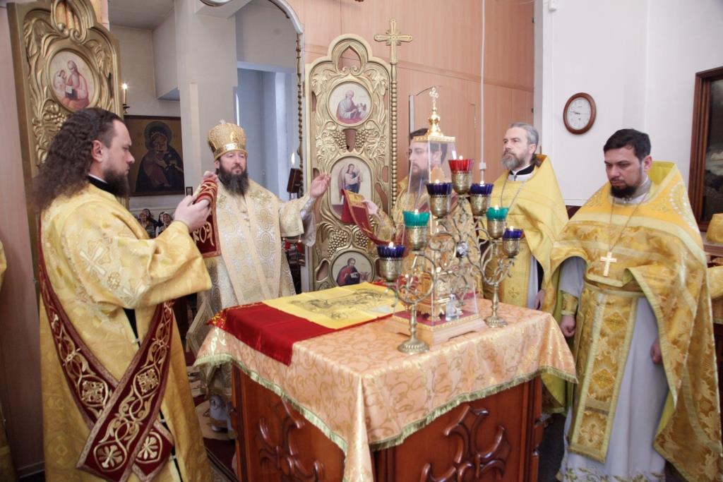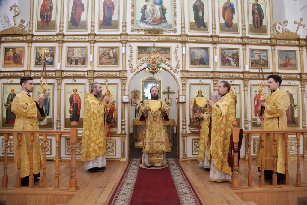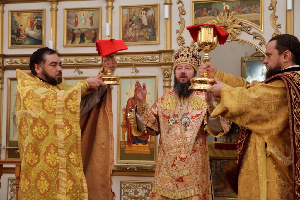Управляющий Усть-Каменогорской и Семипалатинской епархией Преосвященнейший епископ Амфилохий возглавил служение Божественной Литургии святителя Иоанна Златоуста в кафедральном соборе во имя святого апостола Андрея Первозванного города Усть-Каменогорска. Архипастырю сослужили: духовник епархии архимандрит Спиридон (Теплухин), ключарь кафедрального собора иеромонах Никодим (Авдеев), клирик собора иерей Алексий Клепиков, протодиакон Андрей Дудник, иеродиакон Мефодий (Шевчук), диакон Владимир Лаврешин. Песнопения первой подготовительной недели к Великому посту и Божественной Литургии исполнял Архиерейский хор под управлением регента Н. Романцовой.