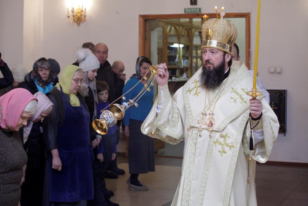 Божественная Литургия была предварена служением молебного пения с водоосвящением, которое совершил ключарь собора иеромонах Никодим (Авдеев).
