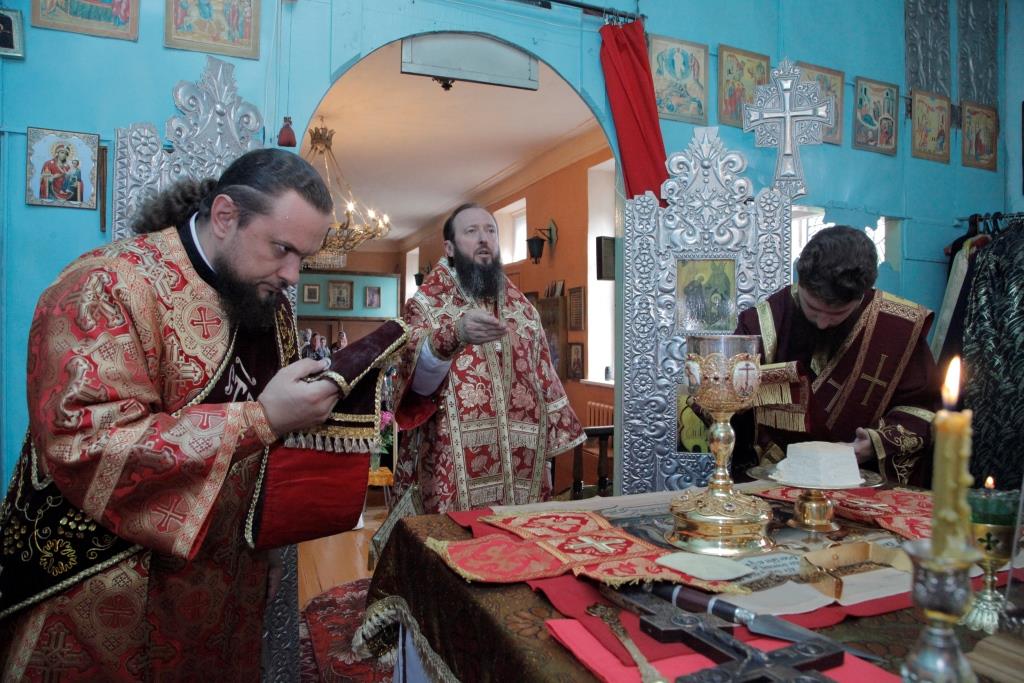 Его Преосвященству сослужили: духовник епархии архимандрит Спиридон (Теплухин), ключарь кафедрального собора иеромонах Никодим (Авдеев), клирики собора иерей Алексий Клепиков и иерей Константин Дьяков, протодиакон Андрей Дудник, иеродиакон Мефодий (Шевчук), диакон Алексий Горбунов, диакон Владимир Лаврешин.