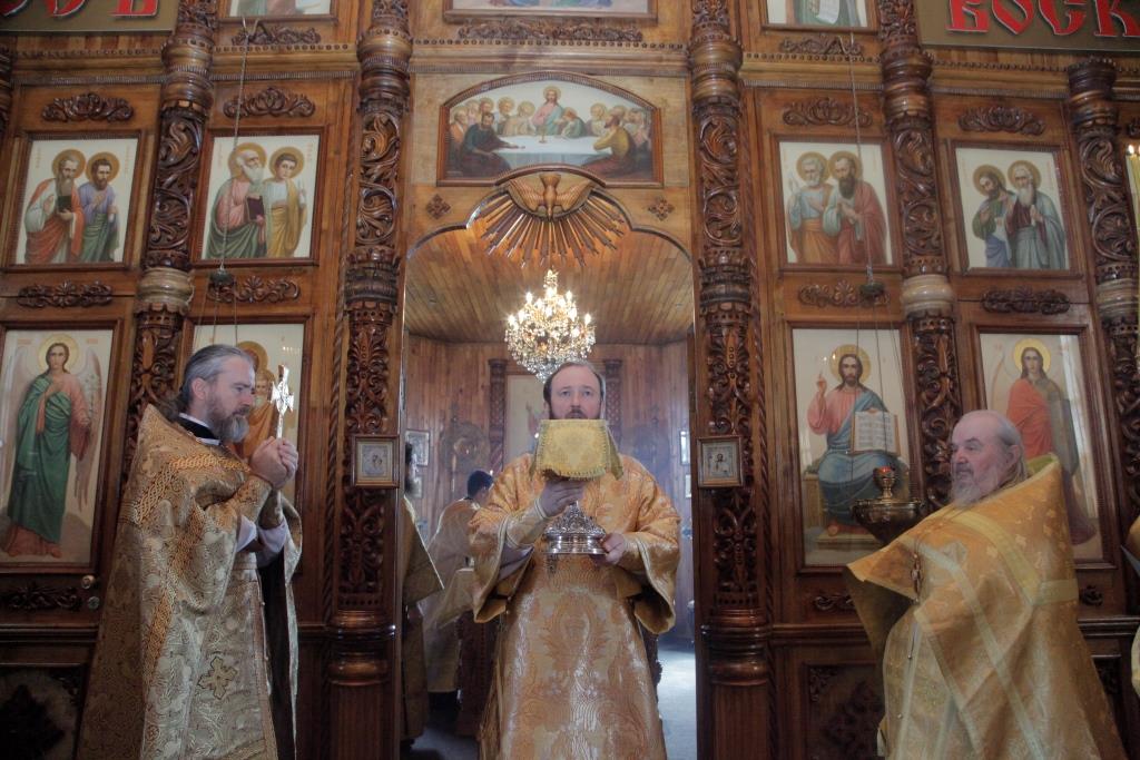 Песнопения Божественной Литургии исполнял хор Покровского храма под управлением регента А. Король. За воскресным богослужением молились прихожане Покровского храма, паломники и городских храмов и окрестных населенных пунктов. Перед причастием мирян проповедовал иерей Алексий Анищенко.