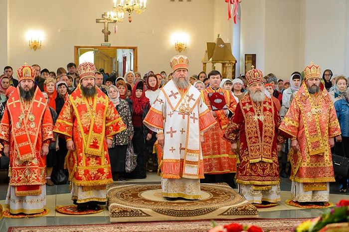 Митрополит Астанайский и Казахстанский Александр совершил Божественную Литургию в Свято-Андреевском кафедральном соборе города Усть-Каменогорска, куда накануне была доставлена мироточивая икона Пресвятой Богородицы «Умягчение злых сердец». Чудотворный образ с 26 апреля текущего года по благословению Святейшего Патриарха Московского и всея Руси Кирилла посещает епархии Казахстанского Митрополичьего округа, освящая собой празднование 145-летия учреждения Туркестанской епархии в регионах страны.