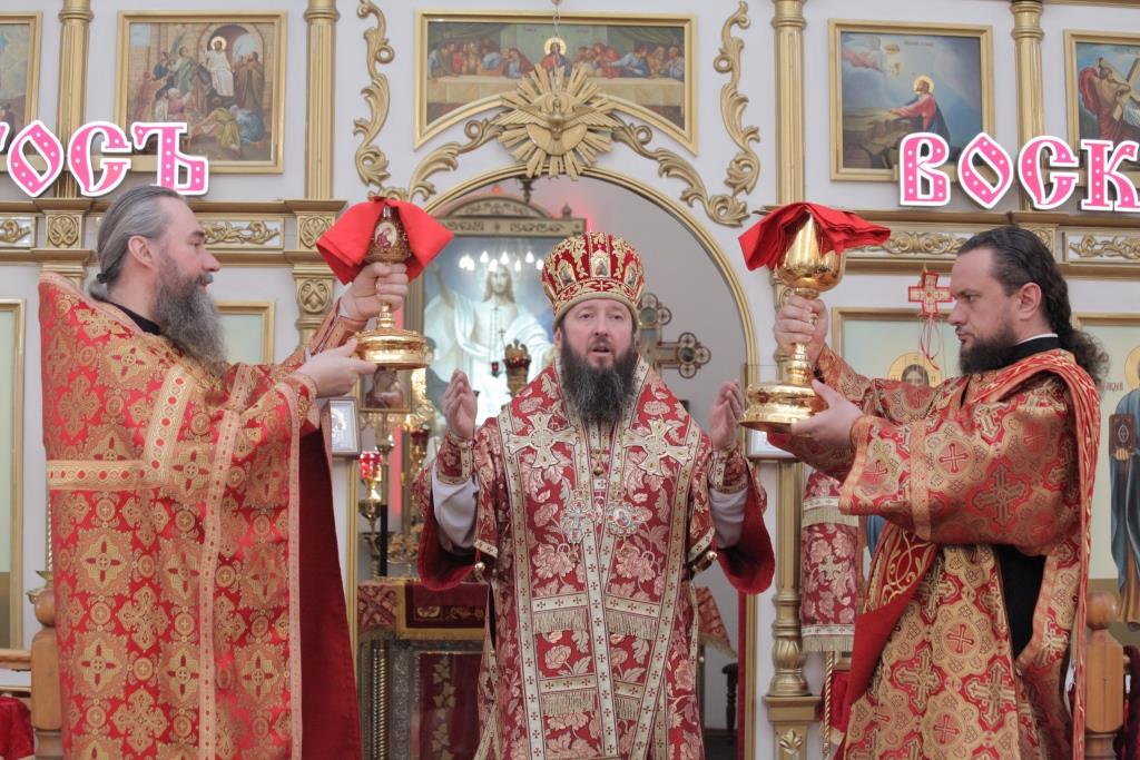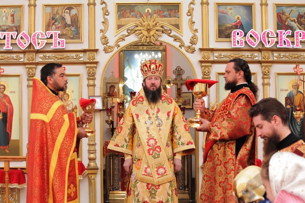 В день престольного праздника Преосвященнейший епископ Усть-Каменогорский и Семипалатинский Амфилохий совершил Божественную Литургию святителя Иоанна Златоуста пасхальным чином во втором кафедральном храме епархии – Спасо-Воскресенском соборе города Семипалатинска. Владыке Амфилохию сослужили: благочинный Семипалатинского церковного округа митрофорный протоиерей Феодор Проскурин, клирик собора протоиерей Михаил Безродний, руководитель молодежного отдела епархии иерей Вячеслав Гутов, клирик Знаменско-Абалацкого женского монастыря иеромонах Мануил (Чабанов), протодиакон Андрей Дудник, диакон Николай Белоконь, иеродиакон Мефодий (Шевчук).
