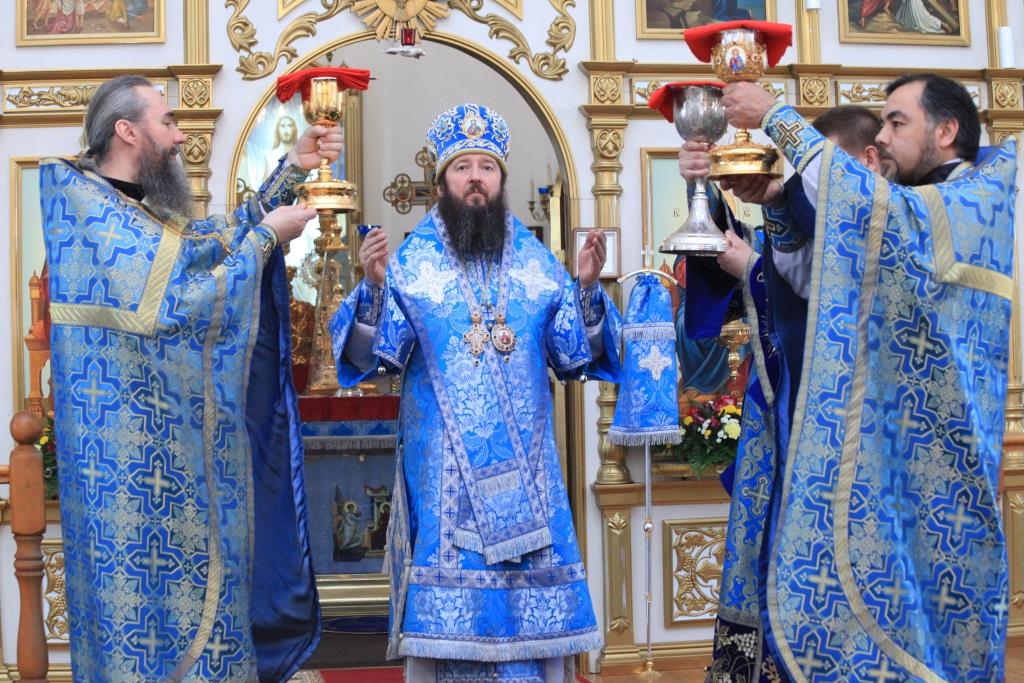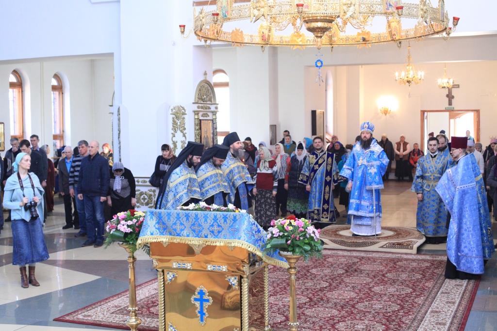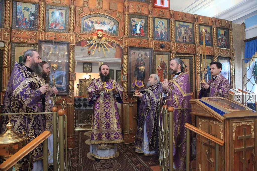 Преосвященнейший епископ Усть-Каменогорский и Семипалатинский Амфилохий возглавил служение Божественной Литургии святителя Иоанна Златоуста в кафедральном соборе во имя апостола Андрея Первозванного города Усть-Каменогорска. В праздничный день Владыке епископу сослужили: духовник епархии архимандрит Спиридон (Теплухин), ключарь кафедрального собора иеромонах Никодим (Авдеев), клирики собора иеромонах Севастиан (Андрющенко) и иеромонах Евгений (Щеглов), иерей Алексий Клепиков и иерей Константин Дьяков, протодиаконы Георгий Засыпкин и Андрей Дудник, иеродиакон Мефодий (Шевчук), диакон Алексий Горбунов. Божественная Литургия в этот день соединяется с великопостной вечерней, за которой читаются ветхозаветные паремии, после которых поется Трисвятое, и далее совершается Литургия Иоанна Златоуста.