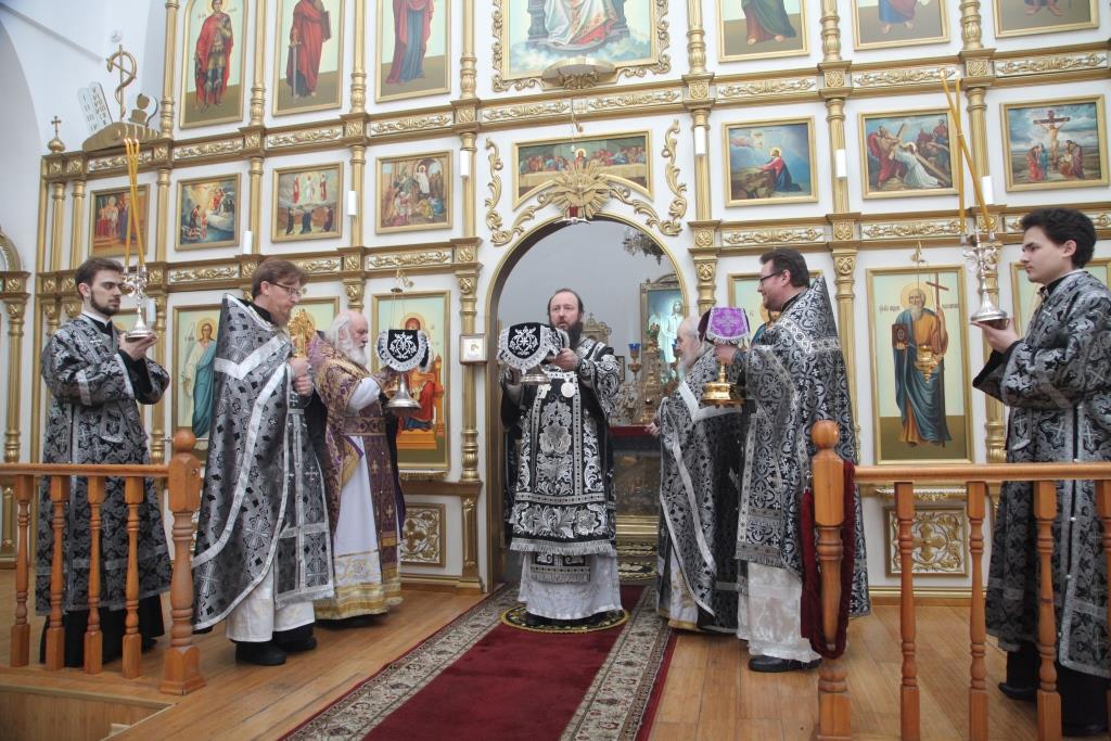 В столетнюю годовщину трагических событий 1917 года, связанных с началом гонений на Святую Православную Церковь, в главном храме Рудного Алтая – кафедральном соборе во имя апостола Андрея Первозванного города Усть-Каменогорска была совершена Божественная Литургия Преждеосвященных Даров Григория Двоеслова святителя Римского. Великопостное Богослужение возглавил Преосвященнейший епископ Усть-Каменогорский и Семипалатинский Амфилохий. Его Проесвященству сослужили: духовник епархии архимандрит Спиридон (Теплухин), благочинный Семипалатинского церковного округа митрофорный протоиерей Феодор Проскурин, благочинный Усть-Каменогорского церковного округа иерей Алексий Анищенко, ключарь Андреевского собора иеромонах Никодим (Авдеев), настоятели и клирики приходов Усть-Каменогорской и Семипалатинской епархии. Диаконский чин возглавил протодиакон Георгий Засыпкин.