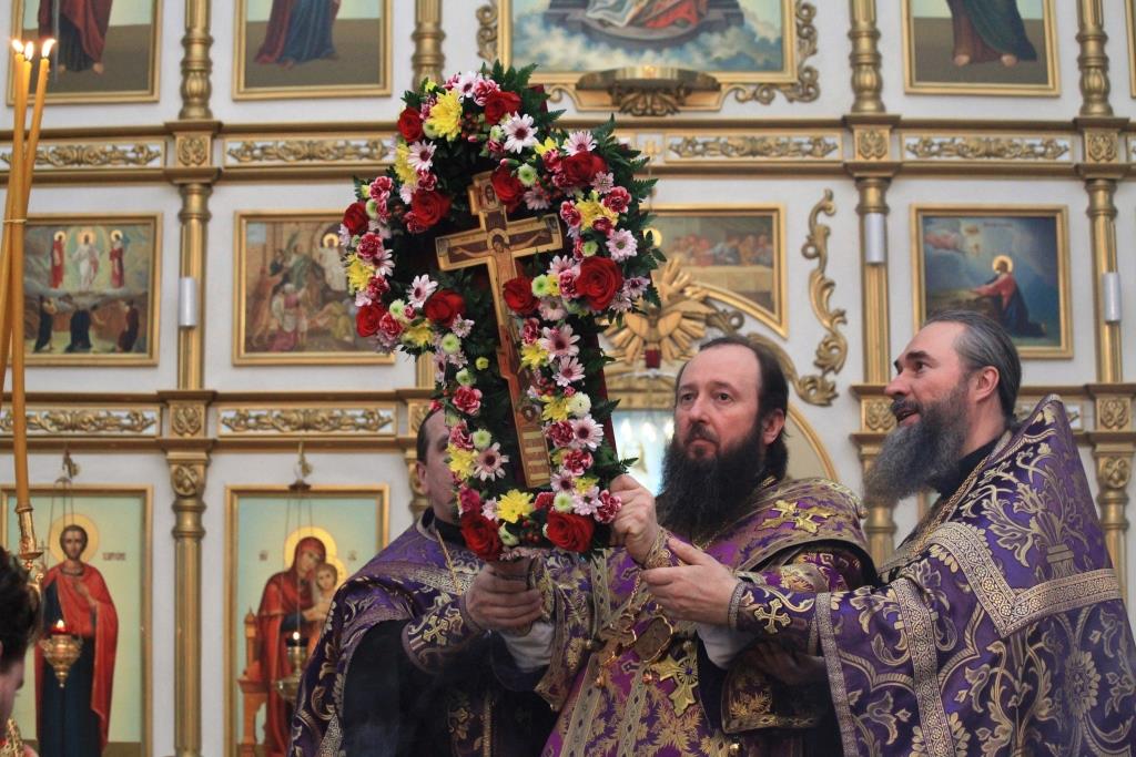 В канун третьего воскресения Святой Четыредесятницы, посвященного воспоминанию крестной жертвы Спасителя, Преосвященнейший епископ Усть-Каменогорский и Семипалатинский Амфилохий совершил Всенощное бдение с чином выноса Всечестных Древ Креста Господня в Свято-Андреевском кафедральном соборном храме города Усть-Каменогорска.
