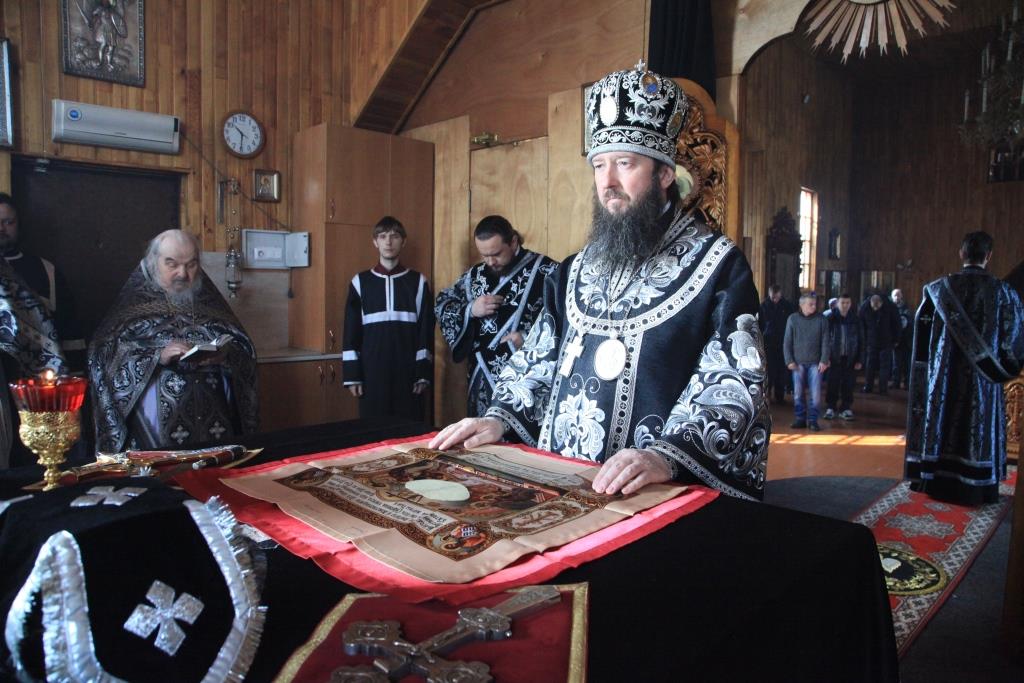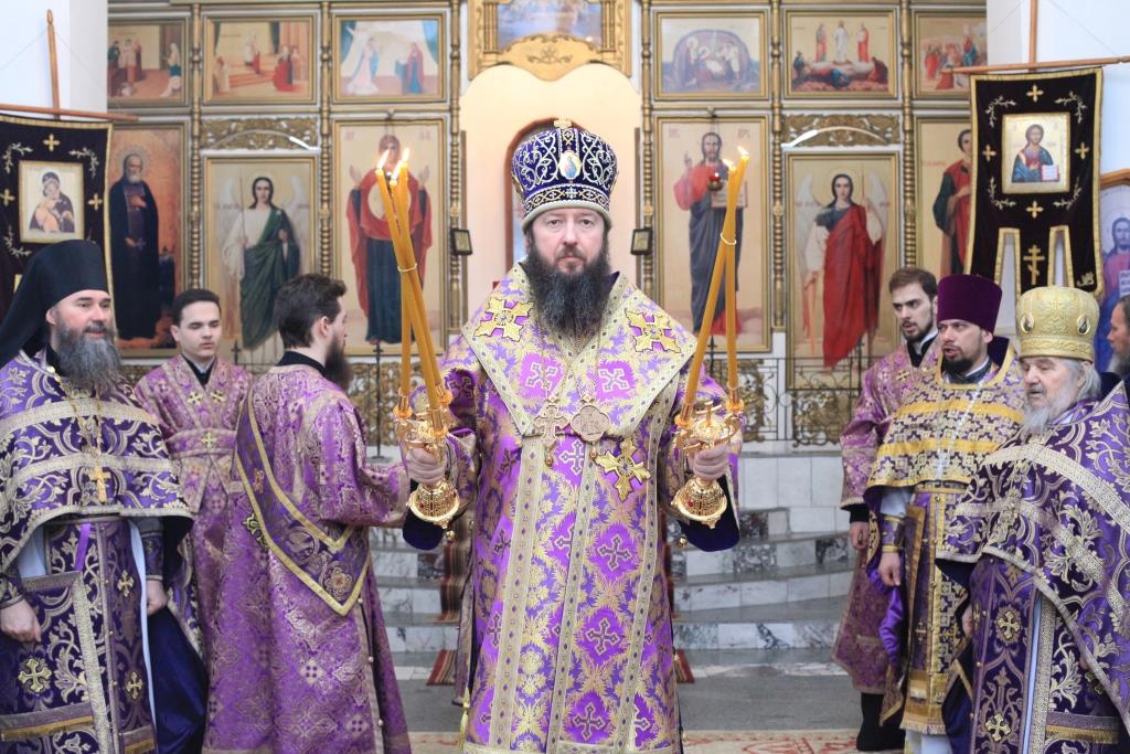 В третье воскресение Святой Четыредесятницы Преосвященнейший епископ Усть-Каменогорский и Семипалатинский Амфилохий возглавил служение Божественной Литургии святителя Василия Великого в храме во имя священномученика Зиновия, пресвитера Согринского.