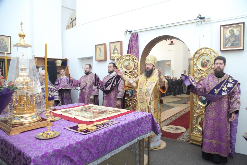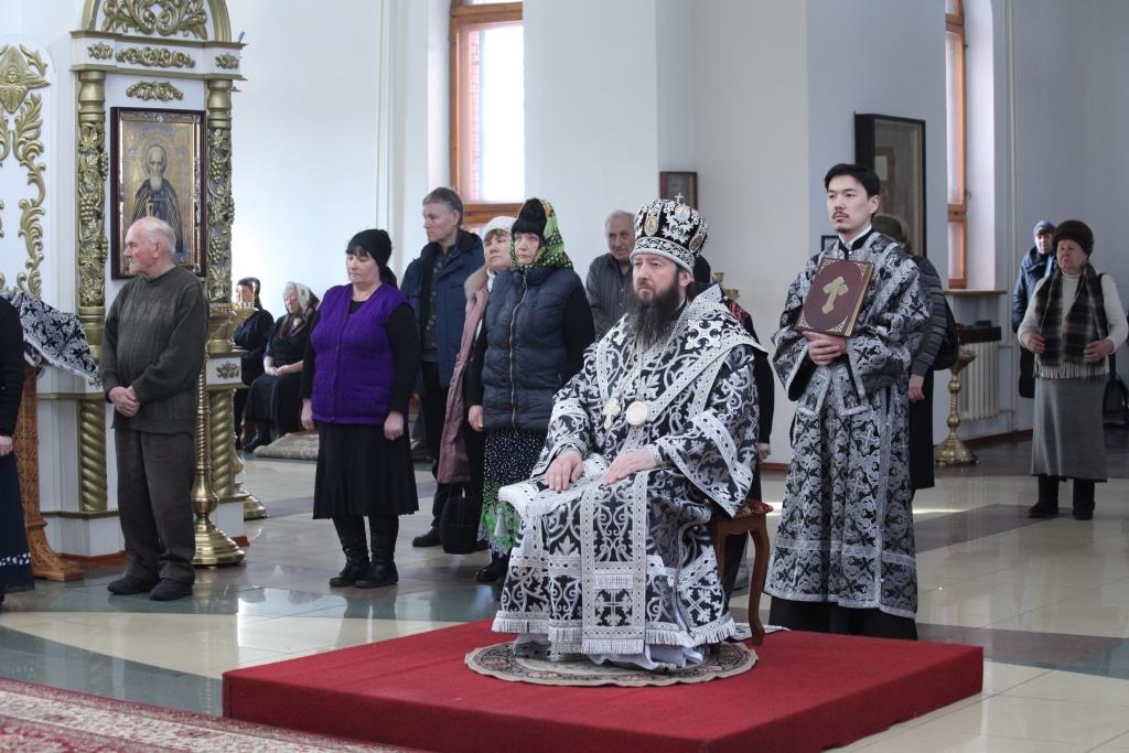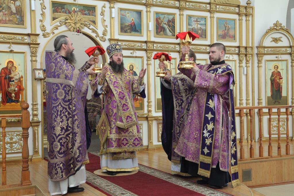 В пятый день наступившего Великого поста Преосвященнейший епископ Усть-Каменогорский и Семипалатинский Амфилохий возглавил служение Божественной Литургии Преждеосвященных Даров святителя Григория Двоеслова в Андреевском кафедральном соборе города Усть-Каменогорска.