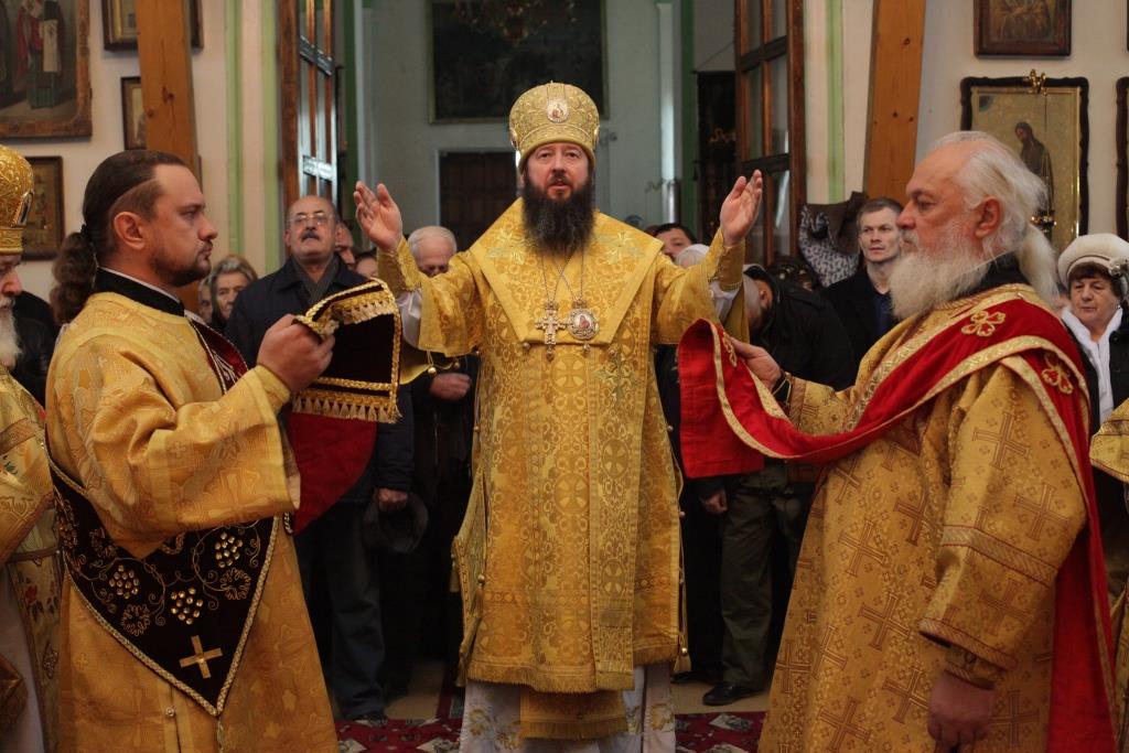Владыке сослужили: духовник епархии архимандрит Спиридон (Теплухин), благочинный Усть-Каменогорского церковного округа, настоятель Покровского храма иерей Алексий Анищенко, ключарь Андреевского кафедрального собора иеромонах Никодим (Авдеев), клирики Покровской церкви иеромонах Иустин (Ларионов), иерей Роман Подрезов, заведующий канцелярией епархиального управления иерей Константин Дьяков. Диаконский чин возглавил протодиакон Андрей Дудник.