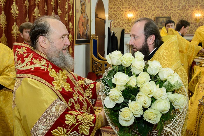 Его Преосвященству сослужили: благочинный Усть-Каменогорского церковного округа, и.о. секретаря епархиального управления иерей Алексий Анищенко, настоятель храма протоиерей Роман Сычук, настоятель храма Преображения Господня г.Шемонаиха протоиерей Петр Хонин.