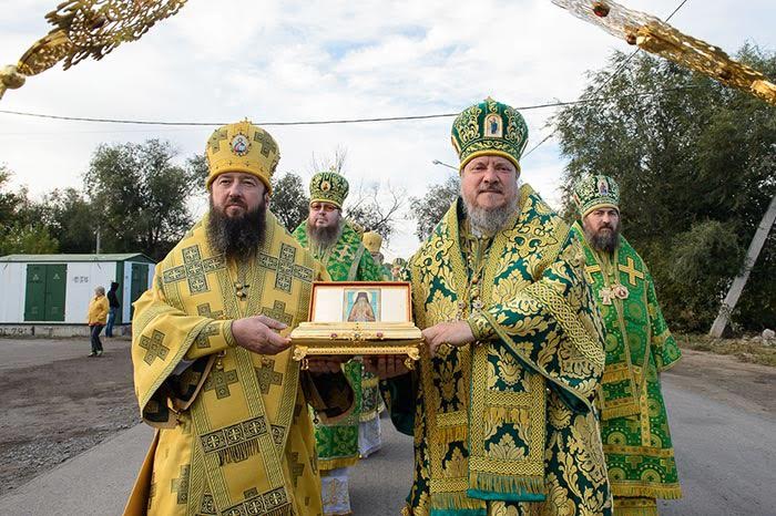 Совершение Божественной Литургии предварил крестный ход из Богородице-Рождественского монастыря в микрорайоне Михайловка в строящийся собор.