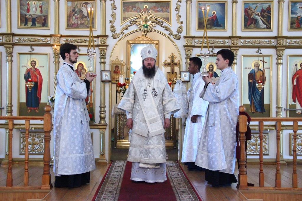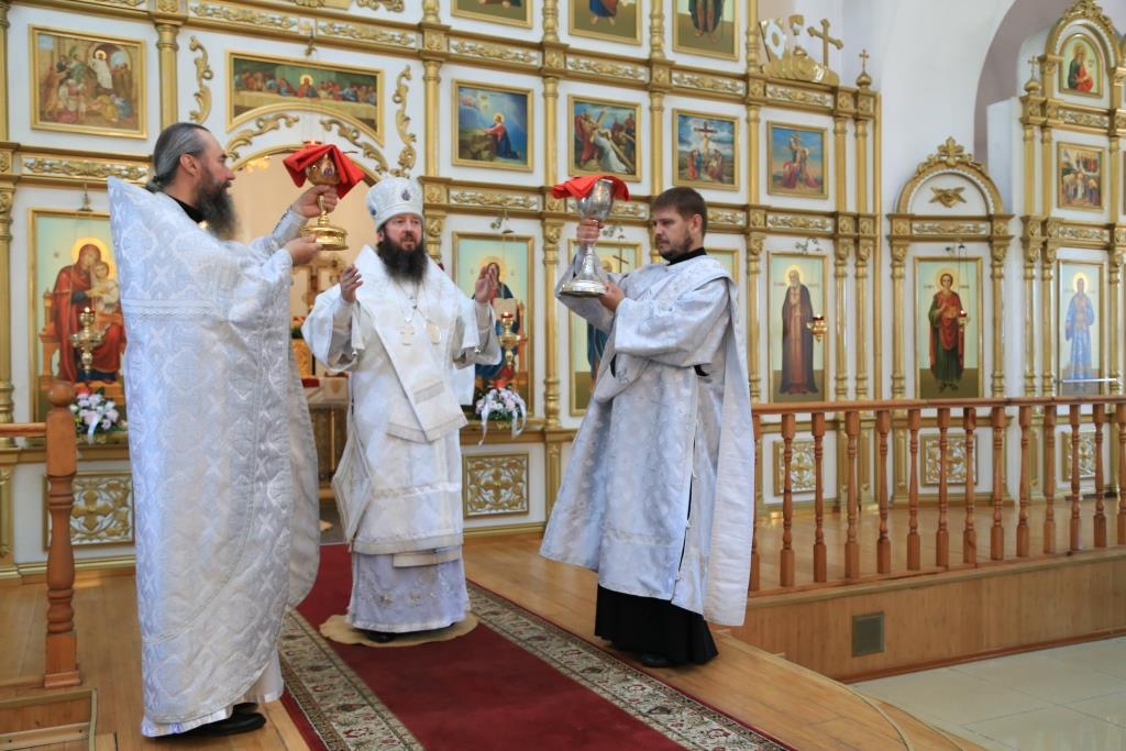 В праздничный день двунадесятого торжества Вознесения Господня Управляющий Усть-Каменогорской и Семипалатинской епархией Преосвященнейший епископ Амфилохий возглавил служение Божественной Литургии святителя Иоанна Златоуста в Свято-Андреевском кафедральном соборе столицы Рудного Алтая. Владыке епископу сослужили: духовник епархии архимандрит Спиридон (Теплухин), ключарь кафедрального собора иеромонах Никодим (Авдеев), клирики собора иерей Алексий Клепиков и иерей Константин Дьяков, протодиаконы Георгий Засыпкин и Андрей Дудник, иеродиакон Мефодий (Шевчук), иеродиакон Тимофей (Хитрич).