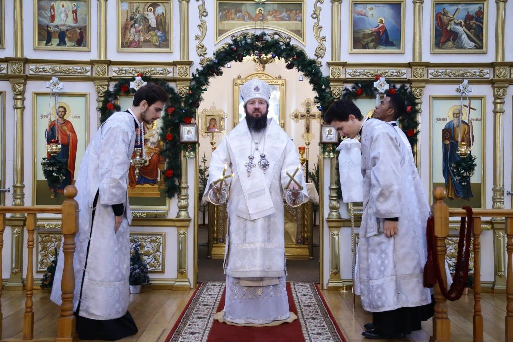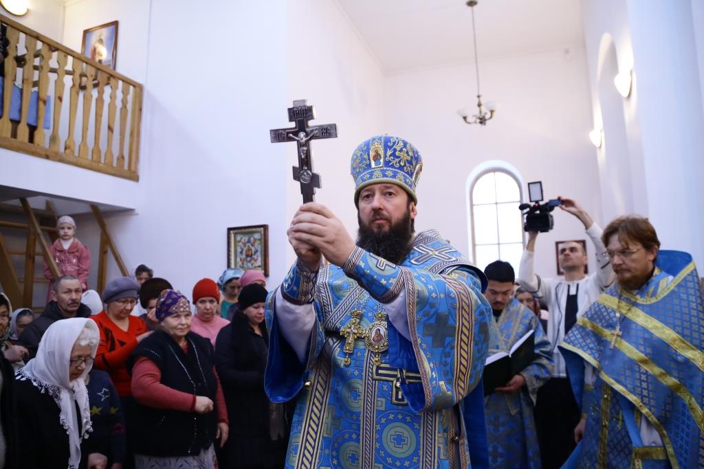 Его Преосвященству сослужили: духовник епархии архимандрит Спиридон (Теплухин), ключарь собора иеромонах Никодим (Авдеев), клирик храма иеромонах Севастиан (Андрющенко), заведующий канцеляриец Усть-Каменогорского епархиального управления иерей Константин Дьяков; протодиакон Георгий Засыпкин,протодиакон Андрей Дудник, иеродиакон Мефодий (Шевчук).