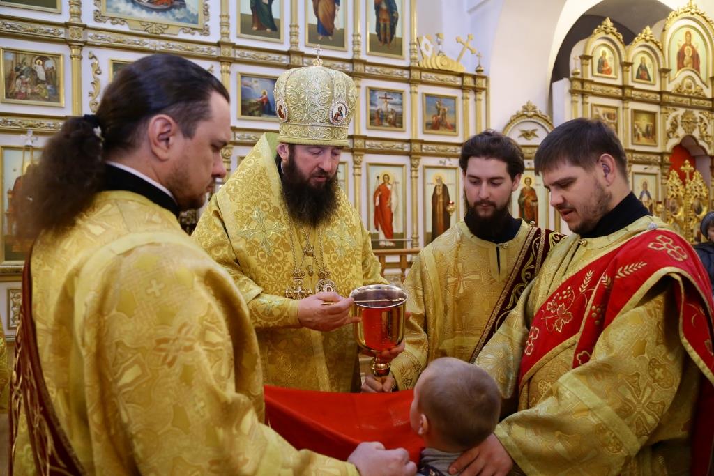 Его Преосвященству сослужили: духовник епархии архимандрит Спиридон (Теплухин), ключарь собора иеромонах Никодим (Авдеев), клирик храма иеромонах Севастиан (Андрющенко), заведующий канцелярией Усть-Каменогорского епархиального управления иерей Константин Дьяков; протодиакон Андрей Дудник, диакон Георгий Сухобокий.