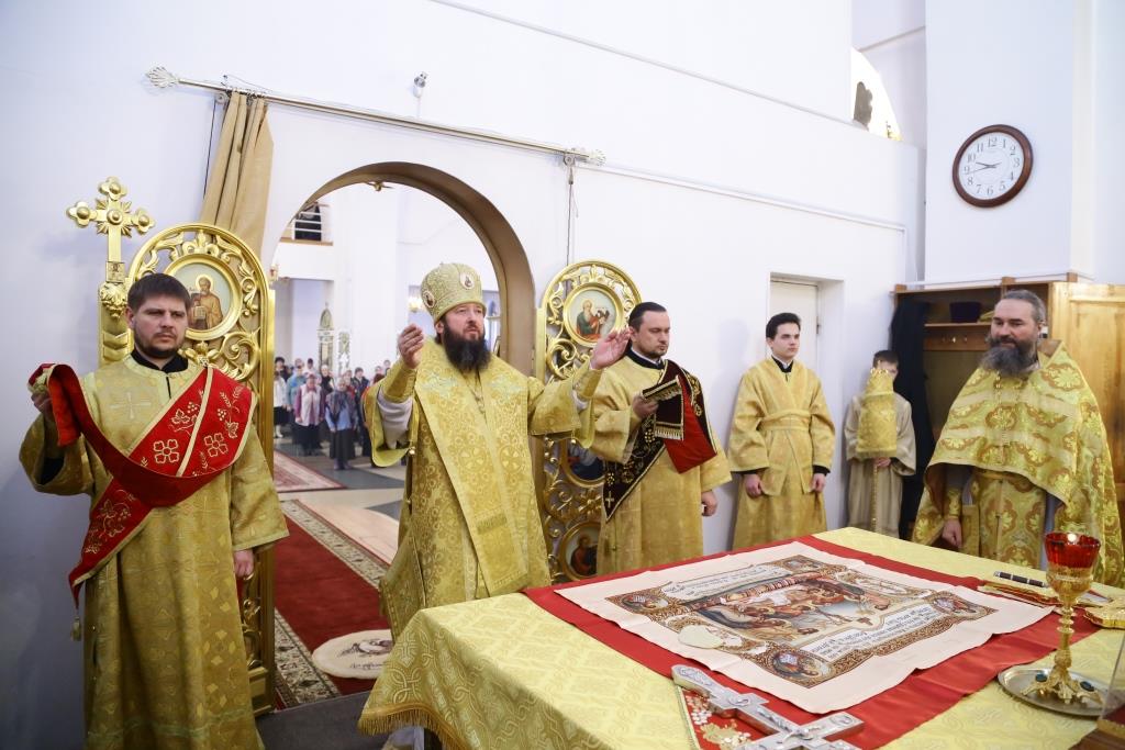 Преосвященнейший епископ Усть-Каменогорский и Семипалатинский Амфилохий совершил чин Великого освящения храма в честь иконы Божией Матери «Нечаянная Радость» города Риддера и Божественную Литургию святителя Иоанна Златоуста в новоосвященном храме. Архипастырю сослужили: благочинный Усть-Каменогорского церковного округа иерей Алексий Анищенко, настоятель Никольского храма Риддера протоиерей Игорь Копылов, настоятель храма в честь иконы Божией Матери «Нечаянная Радость» иерей Андрей Москаленко, руководитель епархиального молодежного отдела иерей Вячеслав Гутов, протодиакон Андрей Дудник, иеродиакон Мефодий (Шевчук).