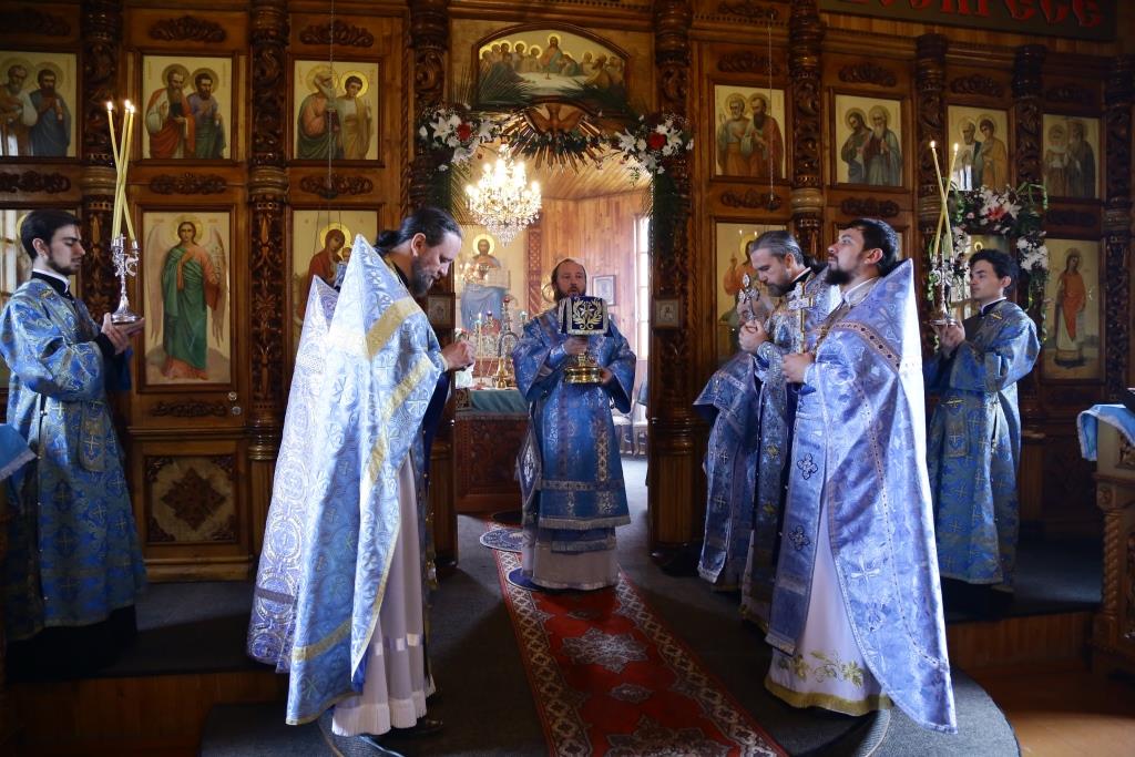 Архиерею сослужили: духовник епархии архимандрит Спиридон (Теплухин), благочинный Усть-Каменогорского церковного округа, настоятель храма иерей Алексий Анищенко; председатель Епархиальной комиссии по делам молодёжи иерей Вячеслав Гутов, духовенство Покровской церкви, диаконский чин. На малом входе за усердное служение Святой Церкви архипастырь наградил клирика храма иерея Романа Подрезова очередной священнической наградой – правом ношения наперсного Креста.