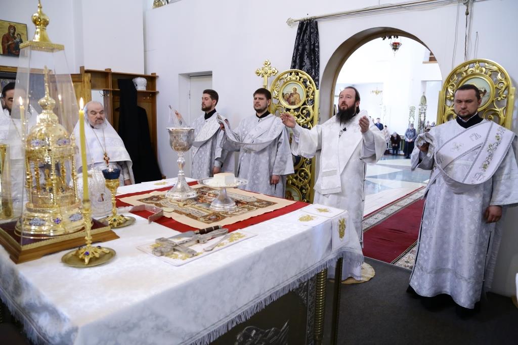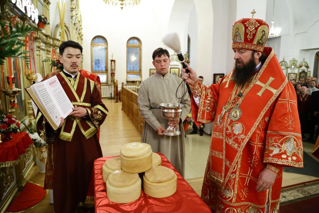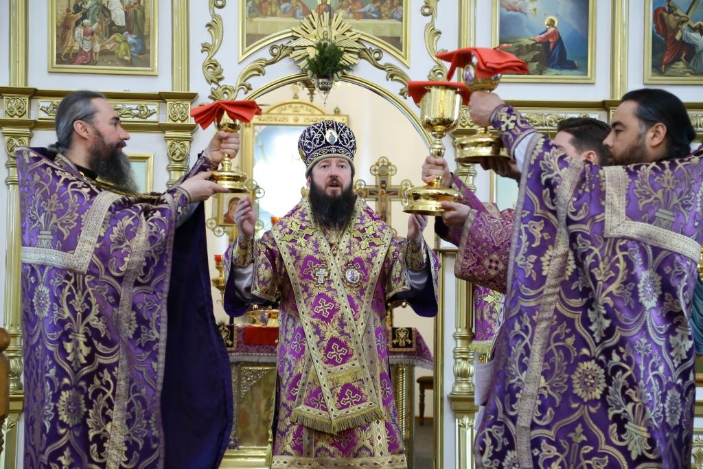 Его Преосвященству сослужили: духовник Усть-Каменогорской епархии архимандрит Спиридон (Теплухин), ключарь Андреевского собора иеромонах Никодим (Авдеев), клирик храма иеромонах Севастиан (Андрющенко), секретарь Управляющего епархией иеромонах Силуан (Магилёв); протодиакон Георгий Засыпкин, протодиакон Андрей Дудник, иеродиакон Мефодий (Шевчук), диакон Георгий Сухобокий.