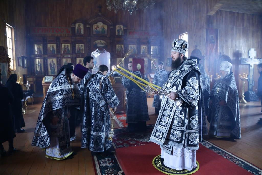 Его Преосвященству сослужили: духовник Усть-Каменогорской епархии архимандрит Спиридон (Теплухин), благочинный Усть-Каменогорского церковного округа, настоятель Покровского прихода иерей Алексий Анищенко; клирик храма иерей Александр Закурдаев, секретарь Управляющего епархией иеромонах Силуан (Магилёв), клирик церкви иерей Роман Подрезов; протодиакон Андрей Дудник, диакон Александр Якушев, иеродиакон Мефодий (Шевчук).