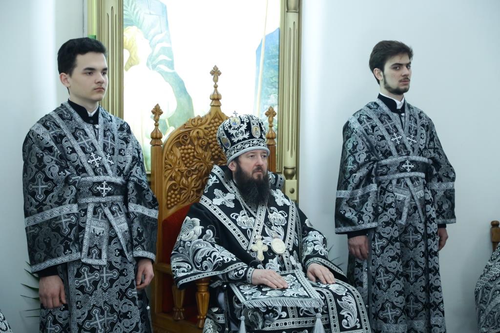 Его Преосвященству сослужили: духовник Усть-Каменогорской епархии архимандрит Спиридон (Теплухин), благочинный Усть-Каменогорского церковного округа иерей Алексий Анищенко, председатель Епархиальной комиссии по делам молодёжи иерей Вячеслав Гутов, секретарь Управляющего епархией иеромонах Силуан (Магилёв), заведующий канцелярией Усть-Каменогорского епархиального управления иерей Константин Дьяков; диаконский чин возглавил протодиакон Андрей Дудник.