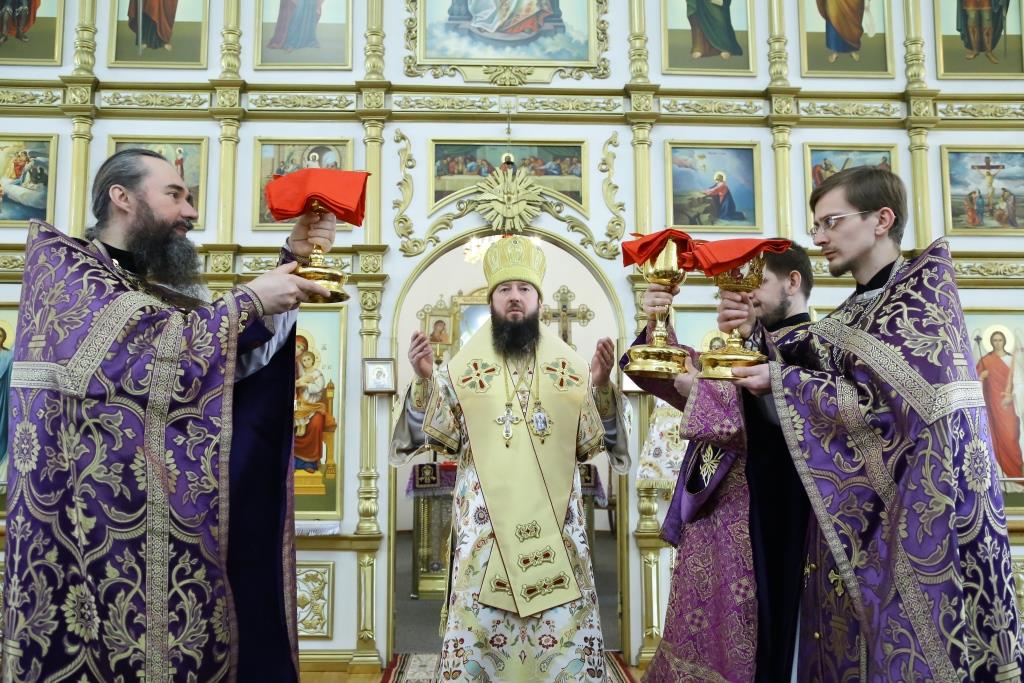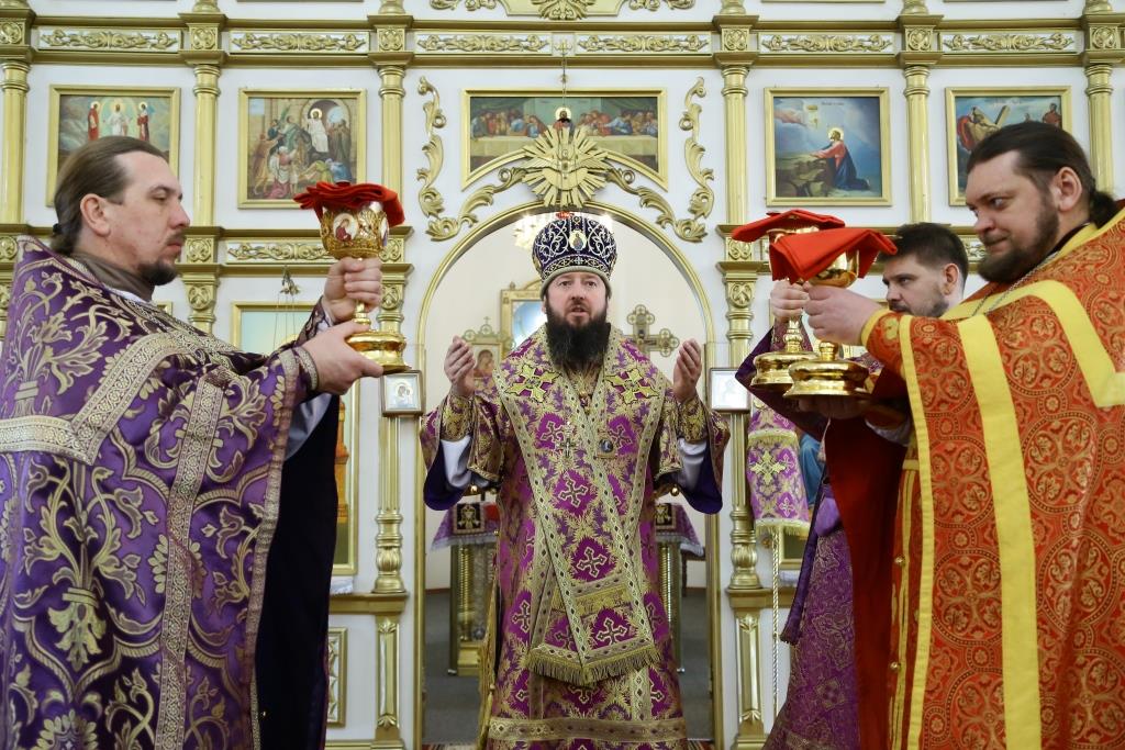 Епископ Усть-Каменогорский и Семипалатинский Амфилохий совершил Божественную литургию святителя Иоанна Златоуста в кафедральном соборе во имя святого апостола Андрея Первозванного города на Иртыше.