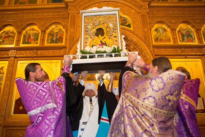 Праздничную Литургию совершили Глава Митрополичьего округа Русской Православной Церкви в Республике Казахстан митрополит Астанайский и Казахстанский Александр и Глава Среднеазиатского Митрополичьего округа митрополит Ташкентский и Узбекистанский Викентий.