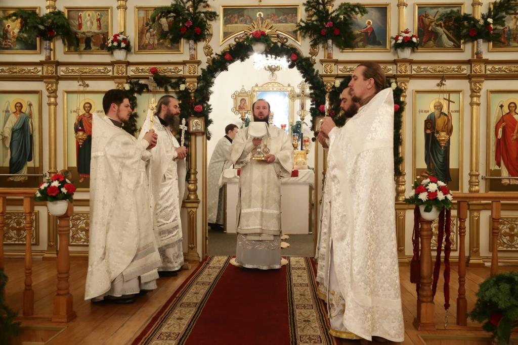За Рождественским богослужением Его Преосвященству сослужили: духовник Свято-Троицкого Усть-Каменогорского мужского монастыря архимандрит Спиридон (Теплухин), ключарь Андреевского собора иеромонах Никодим (Авдеев), иеромонах Севастиан (Андрющенко), секретарь Управляющего Усть-Каменогорской епархией иеромонах Силуан (Магилев), иерей Алексий Клепиков; диаконский чин возглавил протодиакон Георгий Засыпкин.