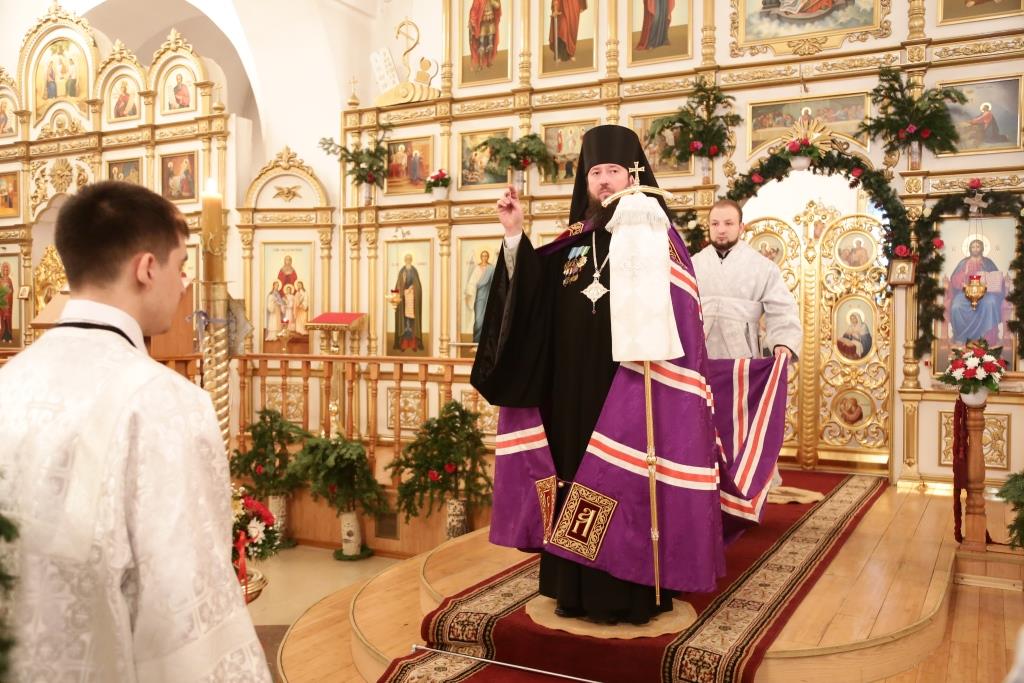 После прочтения Евангельского зачала, повествующего о рождении Господа нашего Иисуса Христа от Девы Марии, Преосвященный епископ Амфилохий обратился к пастве с архипастырским словом.