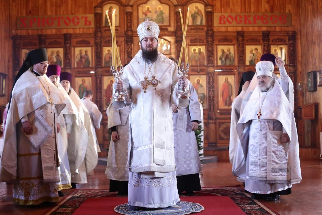 Его Преосвященству сослужили: духовник Свято-Троицкого Усть-Каменогорского мужского монастыря архимандрит Спиридон (Теплухин), секретарь епархии иерей Евгений Яганов, благочинный Усть-Каменогорского церковного округа иерей Алексий Анищенко, настоятели и духовенство храмов столицы Прииртышья, руководители епархиальных отделов в священном сане. Среди молившихся был Генеральный Консул Российской Федерации в Усть-Каменогорске С.В. Анненков с супругой.