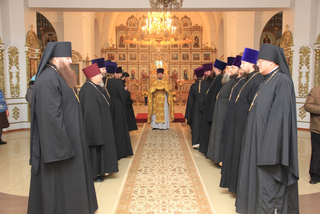 - «Сегодня я пригласил вас, чтобы епархиальные судьи перед всем духовенством приняли присягу, где говорится о том, чтобы в чистоте содержали они свои мысли, чтобы рука их была не скора на решения, но взвешенно, мудро, богобоязненно, с рассуждением и страхом Божиим принимали решение, зная, что Господь и Спаситель наш Иисус Христос милостив бывает ко всем нам, долготерпелив и многомилостив, а посему и мы должны решать дела, которые поступают к нам, в согласии с нашей совестью, законами и канонами Святой Православной Церкви».