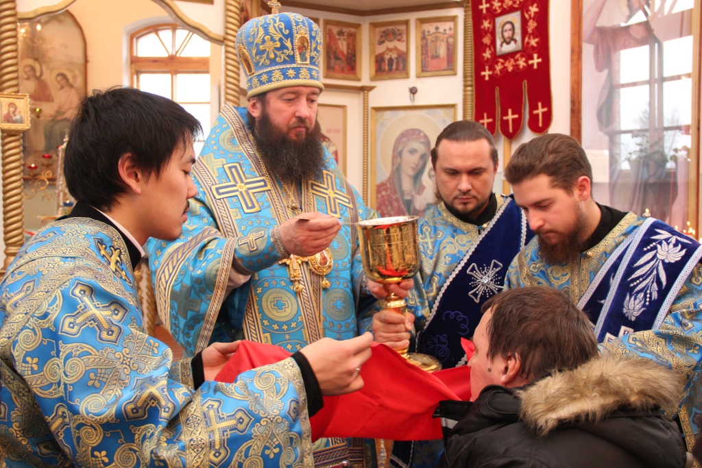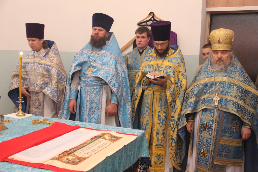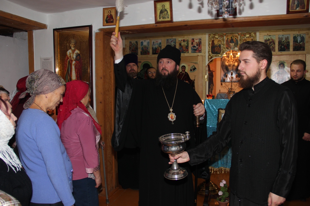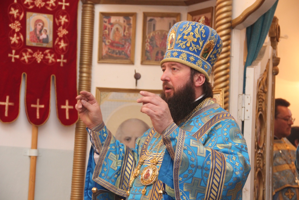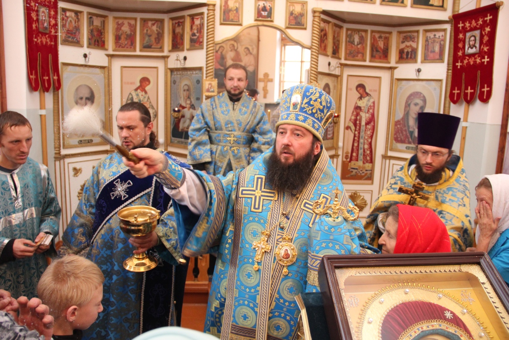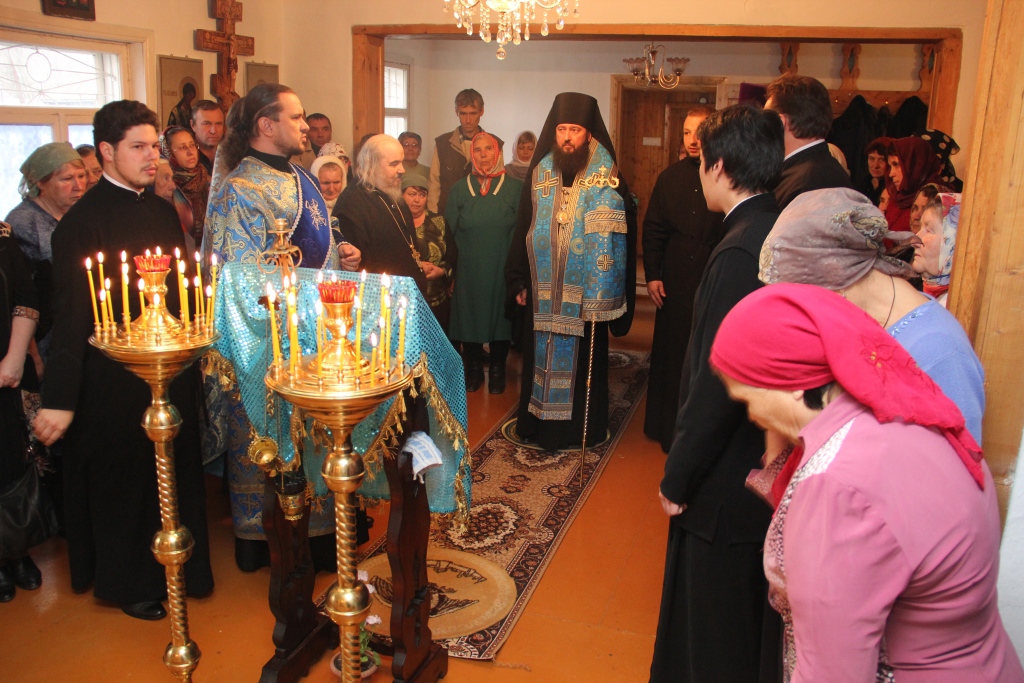 В Свято-Покровском храме, с. Верх-Уба, собралось множество прихожан которые встречали своего архипастыря. Владыка совершил праздничный молебен Пресвятой Богородице и обратился со словом приветствия напутствия и поздравления с торжеством, призвал на всех Божие благословение. В своем слове владыка подчеркнул что в скором будущем желает совершить Божественную Литургию, чтобы все верные смогли поучаствовать в этом «общем деле», «общей молитве» и приобщиться Святых Тела и Крови Христовых.