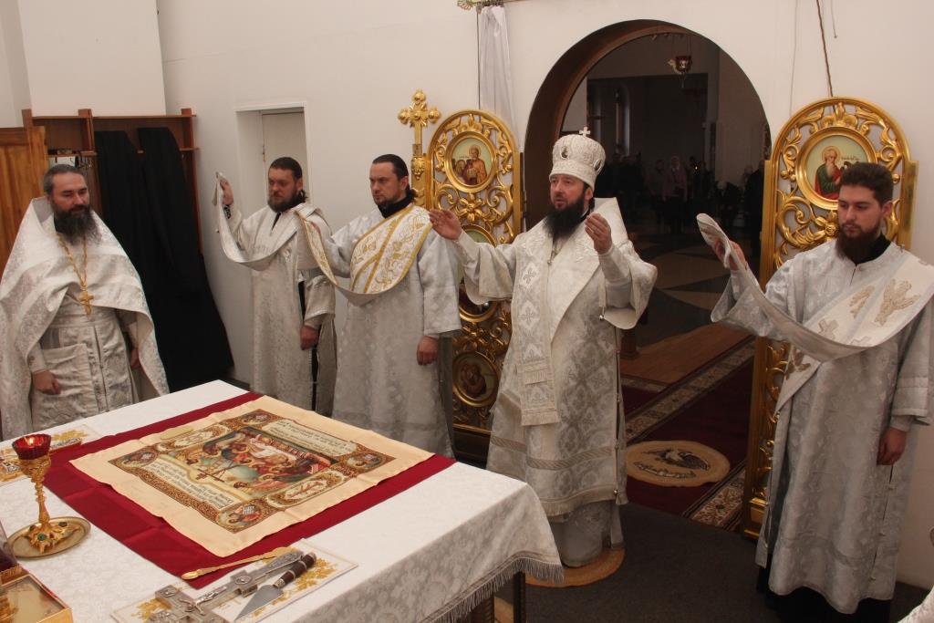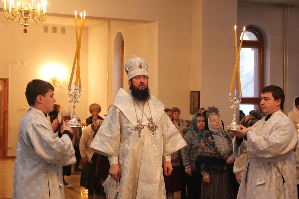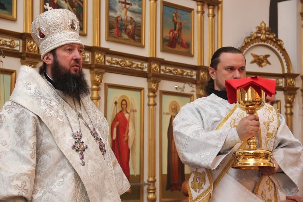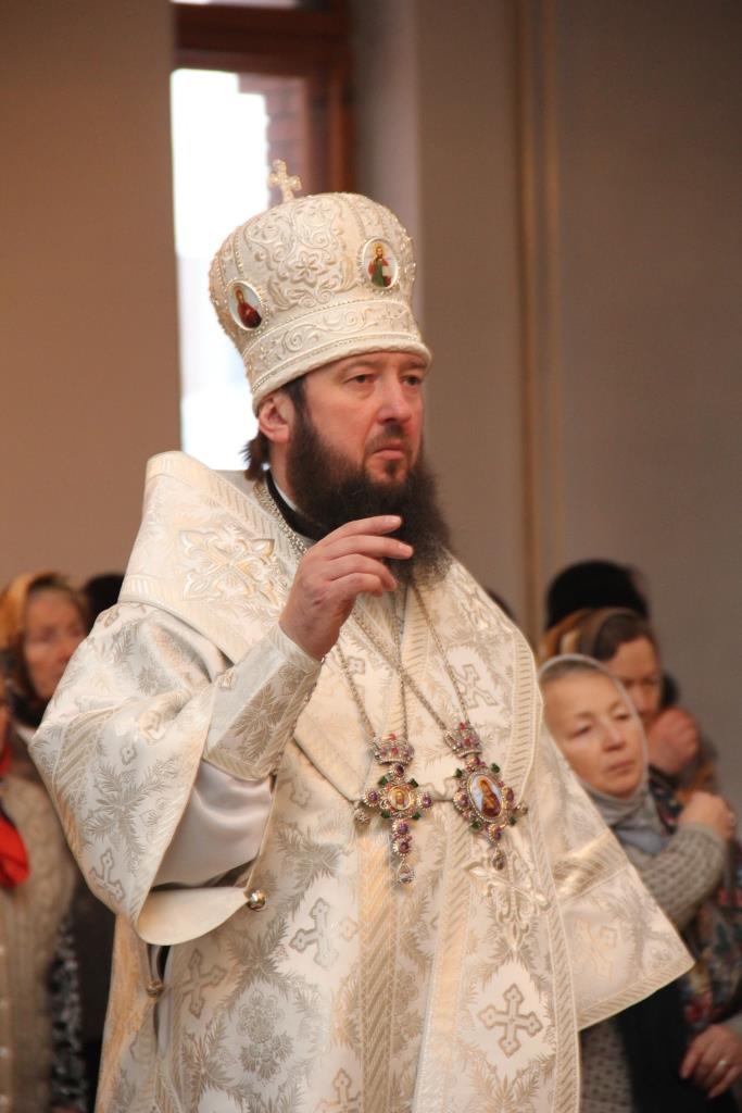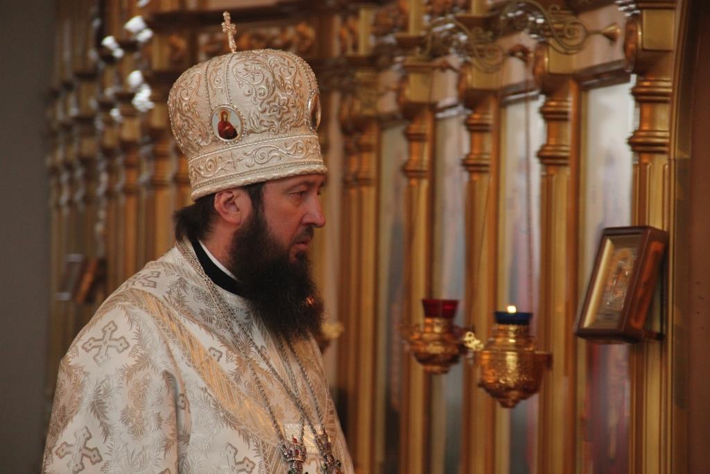 В завершение богослужения Преосвященнейший Владыка поздравил духовенство и прихожан с праздником и обратился к народу Божию со словами проповеди.