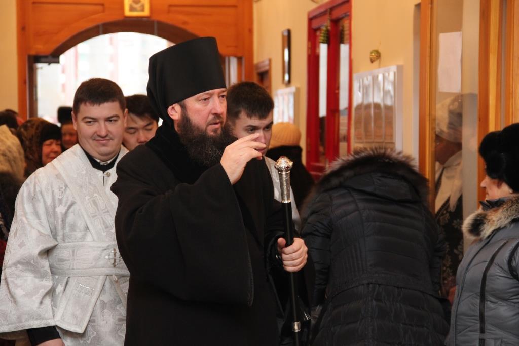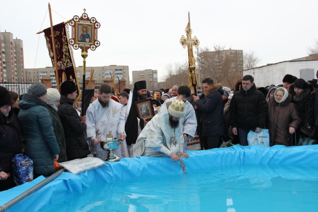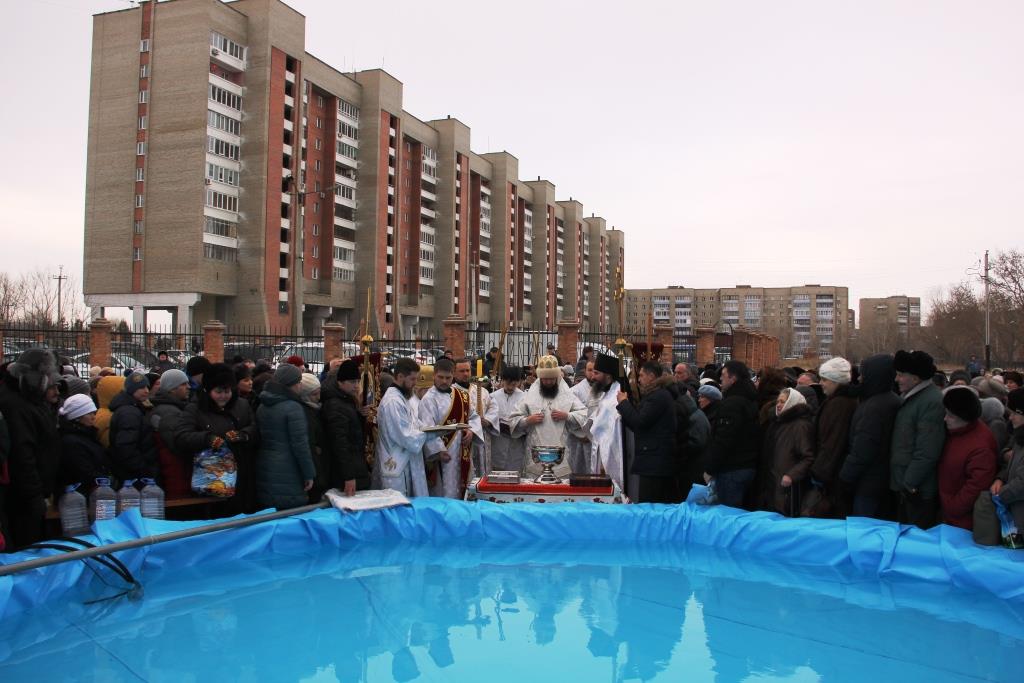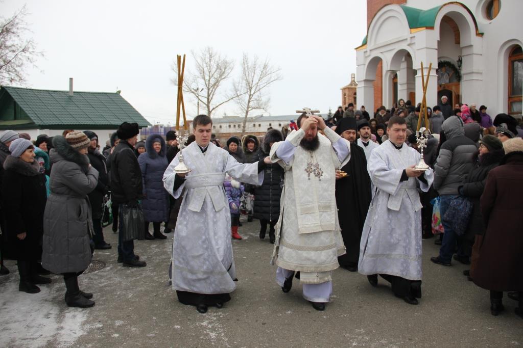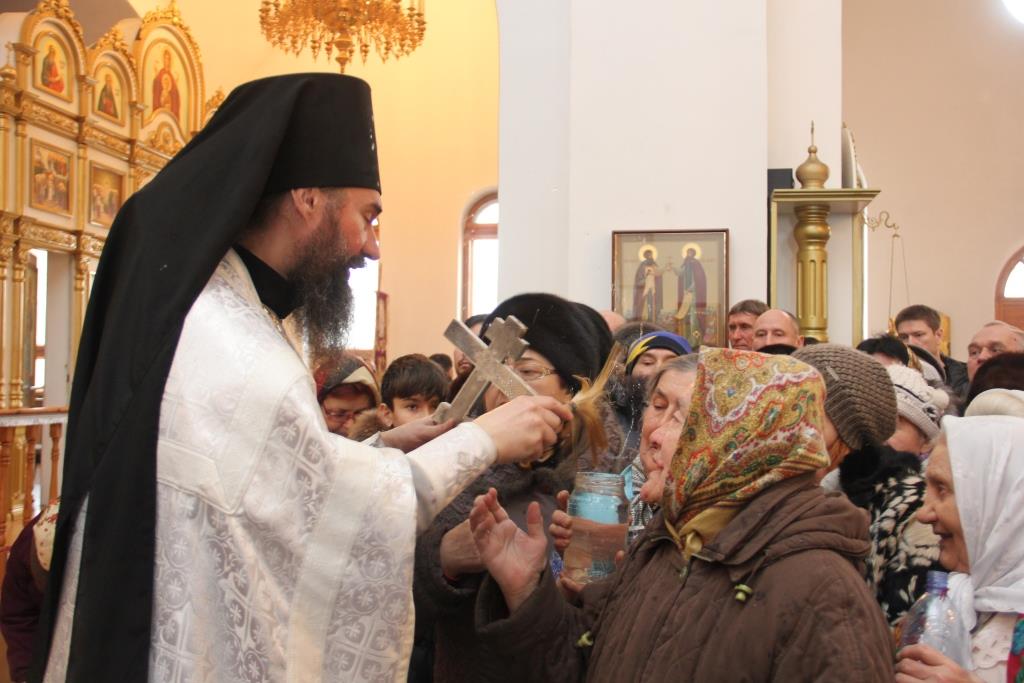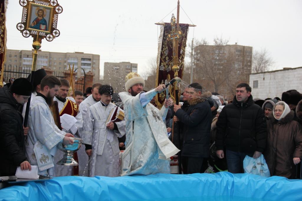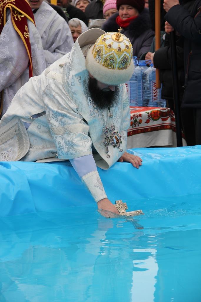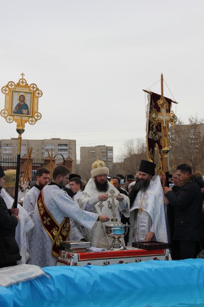 В день праздника кафедральный собор принял под свои своды огромное количество жителей Усть-Каменогорска и паломников с окрестных сел и деревень, в храме совсем не было свободного места, и многим прихожанам пришлось стоять у стен храма, на улице. По заамвонной молитве Преосвященнейший Архипастырь и духовенство крестным ходом вышли из собора, и, у специально устроенной ледяной купели, на соборной площади, был совершен Чин великого освящения воды. После освящения епископ Амфилохий, под многократное пение праздничного тропаря, окропил народ Божий великой агиасмой.
