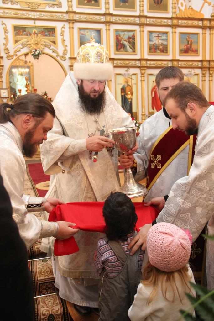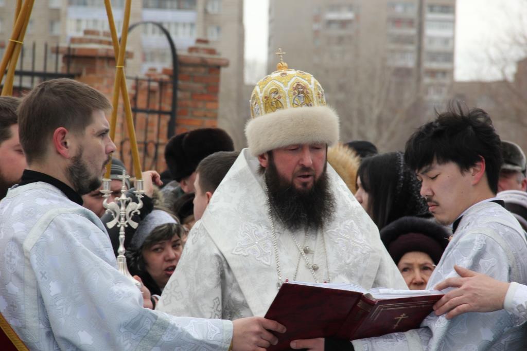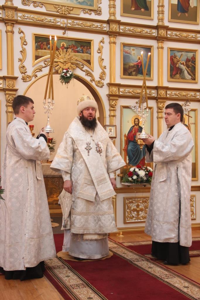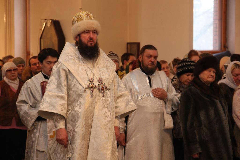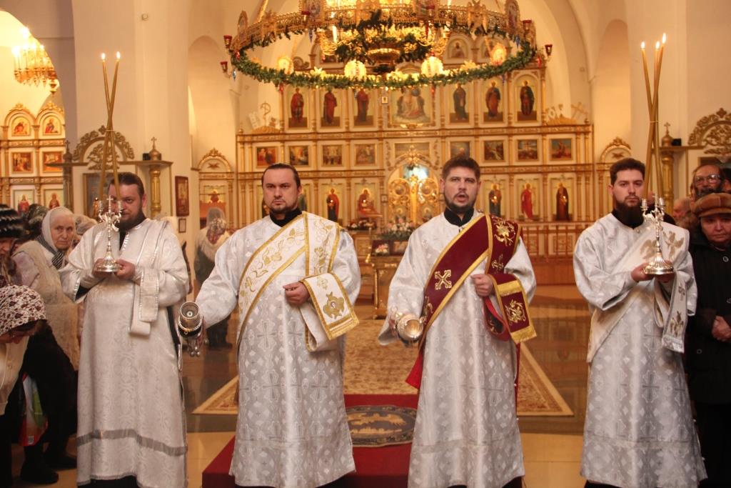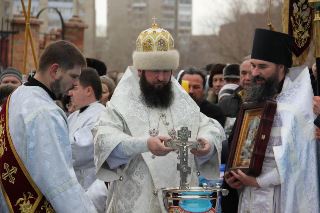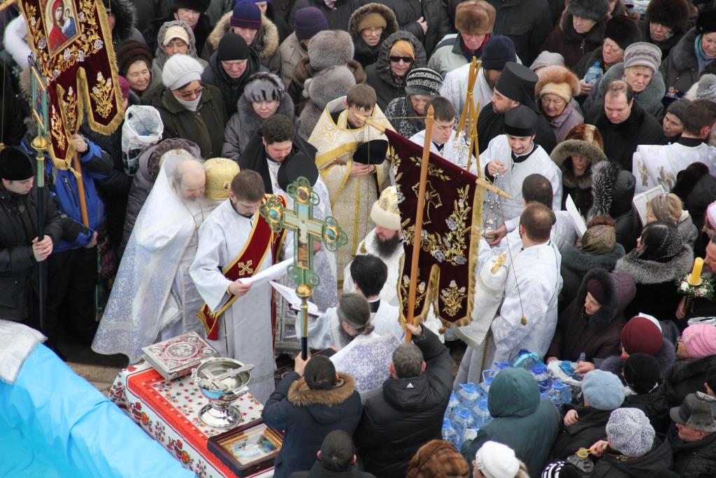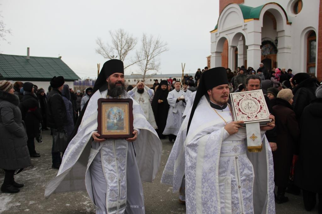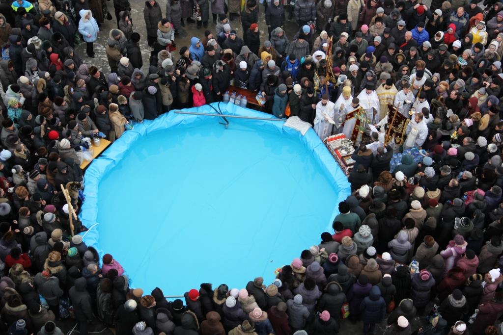 В день праздника кафедральный собор принял под свои своды огромное количество жителей Усть-Каменогорска и паломников с окрестных сел и деревень, в храме совсем не было свободного места, и многим прихожанам пришлось стоять у стен храма, на улице. По заамвонной молитве Преосвященнейший Архипастырь и духовенство крестным ходом вышли из собора, и, у специально устроенной ледяной купели, на соборной площади, был совершен Чин великого освящения воды. После освящения епископ Амфилохий, под многократное пение праздничного тропаря, окропил народ Божий великой агиасмой.