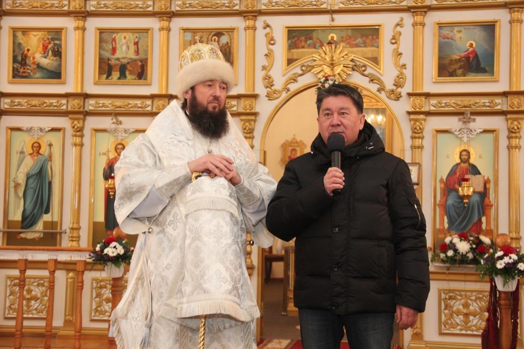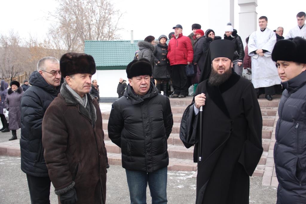 На богослужении присутствовали аким города Усть-Каменогорска Темирбек Жумакулович Касымжанов и заместитель акима города Владимир Михайлович Головатюк.