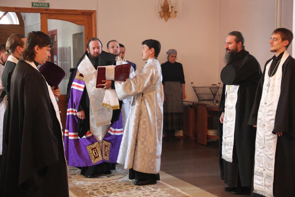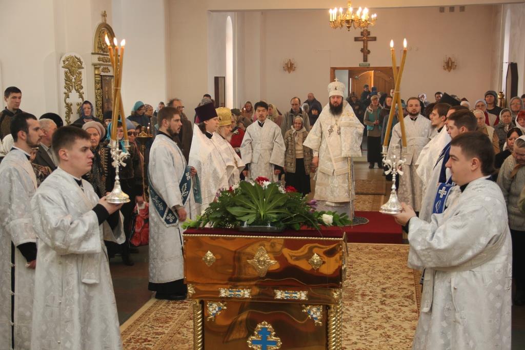 Накануне праздника Преосвященнейший епископ Усть-Каменогорский и Семипалатинский Амфилохий совершил уставное Всенощное бдение с литией и в самый день Сретения возглавил служение Божественной Литургии в Свято-Андреевском кафедральном соборе города Усть-Каменогорска. Архипастырю сослужили: архимандрит Спиридон (Теплухин), иерей Алексий Клепиков, иеромонах Никодим (Авдеев), иерей Роман Подрезов, иерей Константин Дьяков, протодиаконы Георгий Засыпкин и Андрей Дудник, иеродиакон Мефодий (Шевчук).