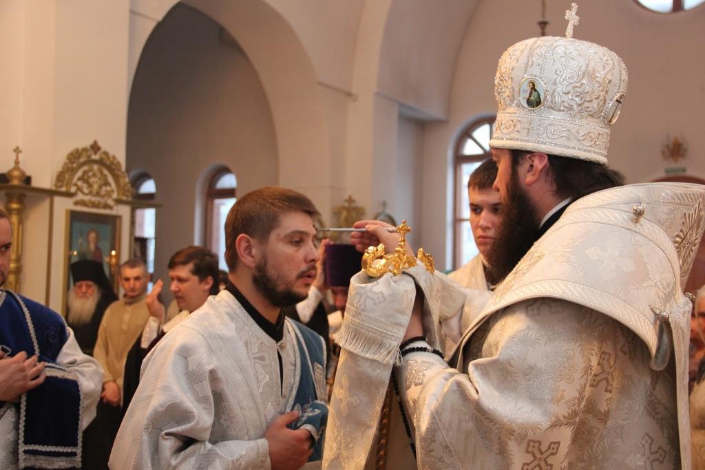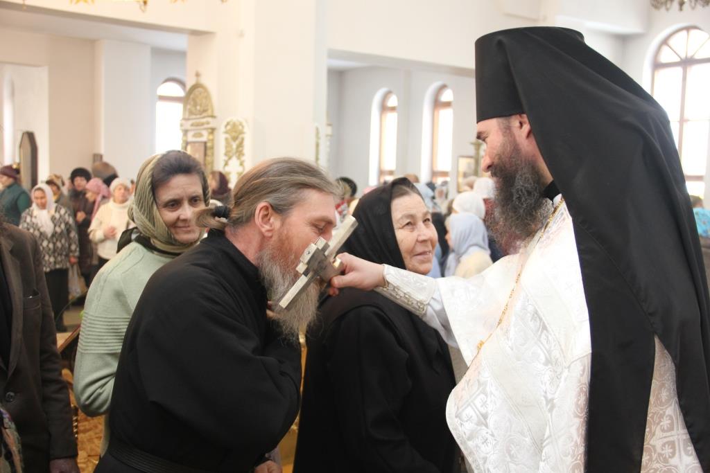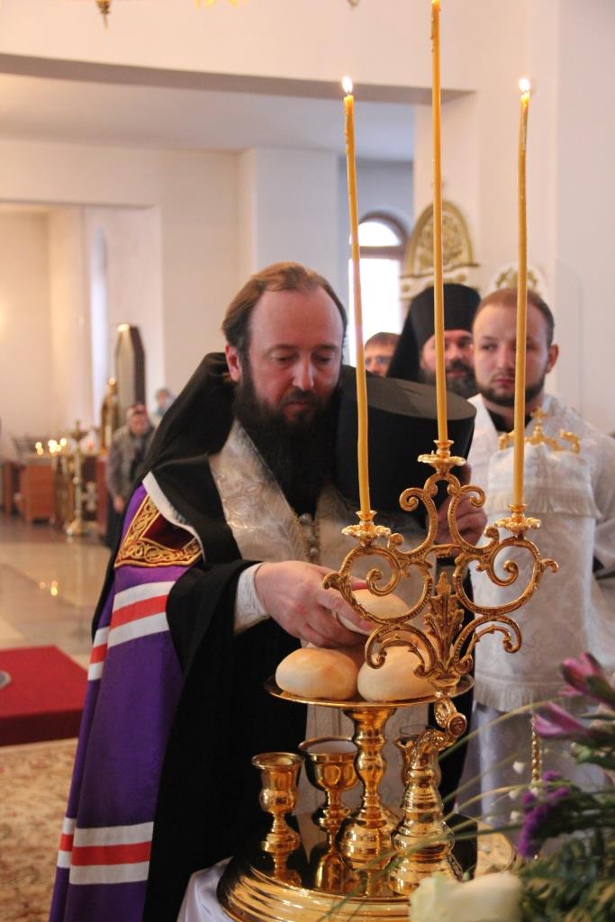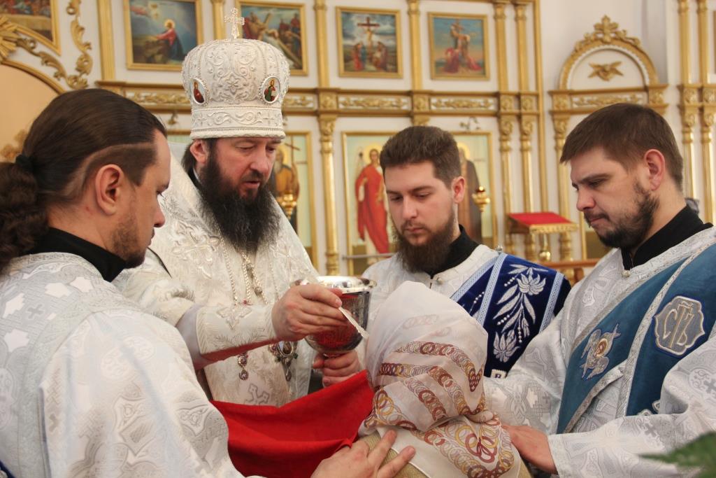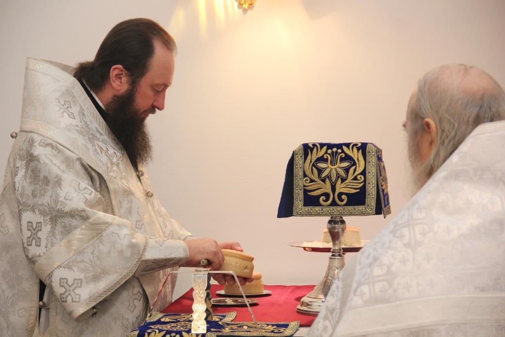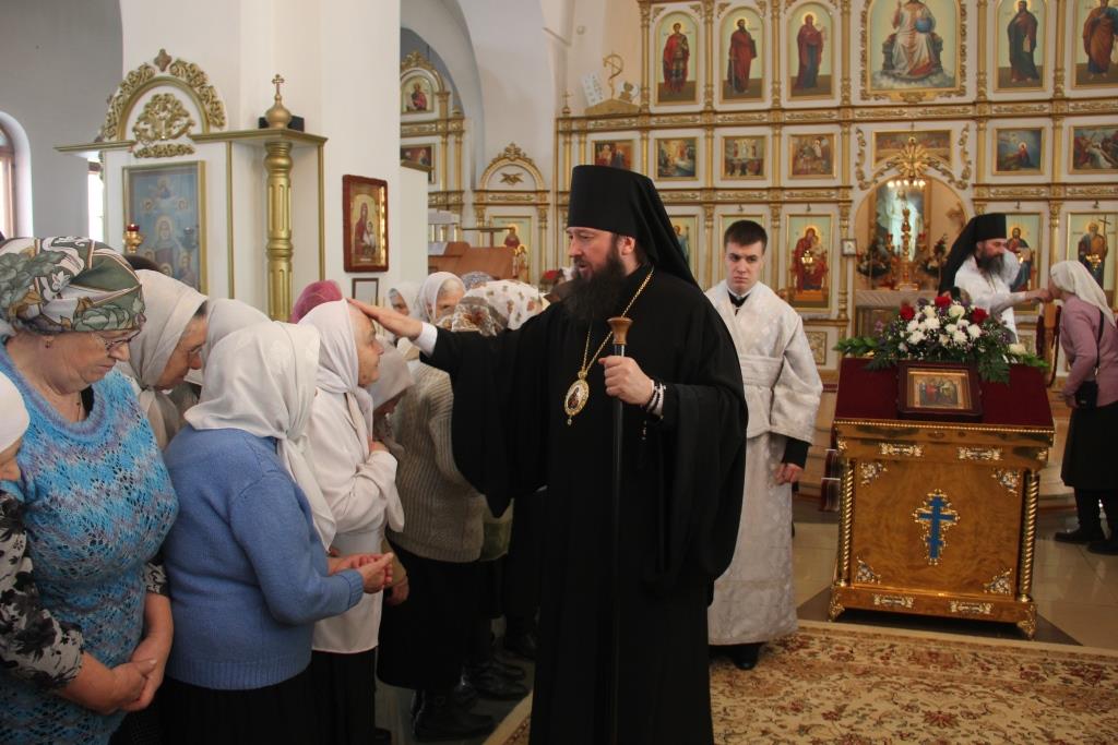 На утрене, после чтения Евангельского зачала, Преосвященнейший Владыка помазал сослужащее духовенство и прихожан освященным елеем.