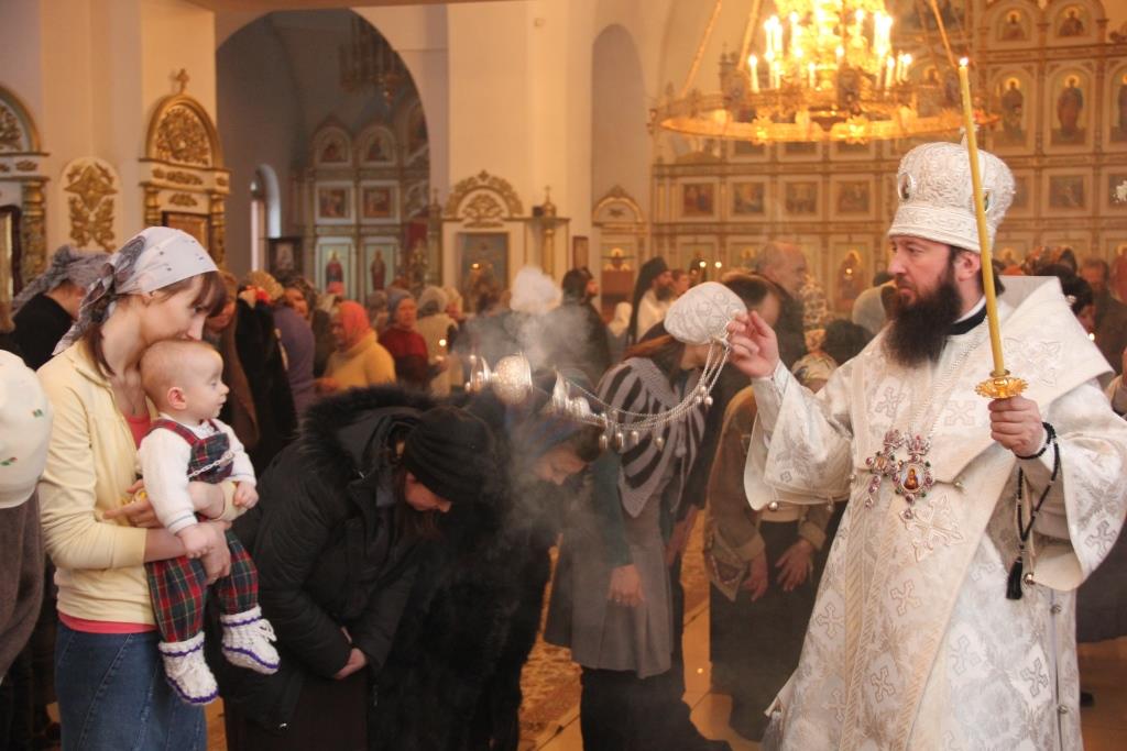 «Сердечно приветствую всех вас в этот радостный день, в праздник света и Божией милости. Смысл празднуемого нами торжества гораздо глубже обычного понимания праздника Сретения как принесения Младенца Христа в Храм ради посвящения Его Богу и принесения установленной Законом жертвы. Сегодняшний праздник – это день встречи Ветхого и Нового Заветов, день, когда старое сменяется новым и лучшим, когда на небосклоне Вселенной начинает ярко сиять и просвещать всех свет Христов, свет Евангелия, свет любви Божией. Сегодня Богомладенец входит в общество людей, знаменуя этим грядущее изменение привычного уклада ветхозаветного благочестия на что-то принципиальное новое, чему не было аналогов. Ныне во главу угла становится любовь и жертвенность Христа. Праведный Симеон Богоприимец, приняв на свои руки обещанного Богом Мессию, радостно воспевает Ему: «ныне отпущаеши раба Твоего, Владыко, по глаголу Твоему, с миром, яко видеста очи мои спасение Твое…свет во откровение языков и славу людей Твоих Израиля» (Лк. 2:29-32). Этот Божественный свет осиял сегодня и нас с вами, искра Христова коснулась каждого сердца. Поэтому, братия и сестры, надо приложить все свои усилия для того, чтоб сохранить этот Божий дар, и не только сохранить, но и приумножить, и поделиться светлой радостью о Христе со всем миром, с каждым, кто еще вне Церкви и вне Евангелия».