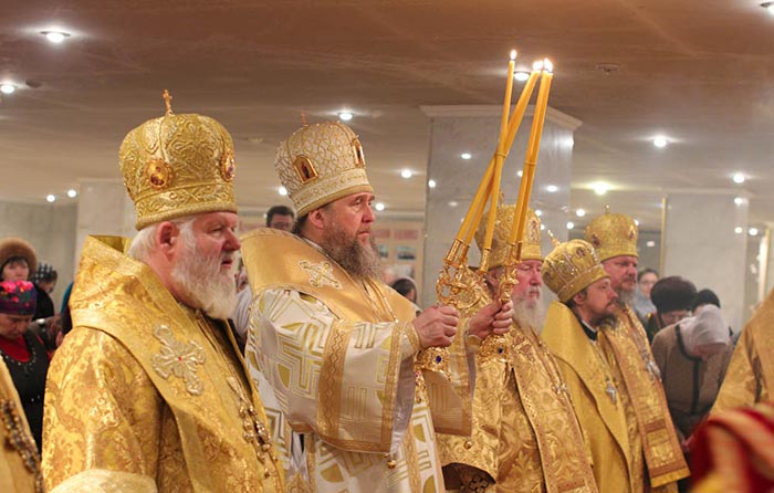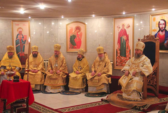 Главе Православной Церкви Казахстана сослужили: члены Синода Казахстанского Митрополичьего Округа - архиепископ Чимкентский и Таразский Елевферий, епископ Петропавловский и Булаевский Гурий, епископ Костанайский и Рудненский Анатолий, Управляющий делами Православной Церкви Казахстана епископ Каскеленский Геннадий, епископ Павлодарский и Экибастузский Варнава, епископ Карагандинский и Шахтинский Севастиан, епископ Усть-Каменогорский и Семипалатинский Амфилохий, епископ Кокшетауский и Акмолинский Серапион; благочинный храмов Астаны архимандрит Сергий (Карамышев); настоятель храма в честь иконы Божией Матери «Всех скорбящих Радость» г. Алма-Аты протоиерей Евгений Воробьев; клирик алма-атинского Покровского храма протоиерей Александр Милованов; руководитель информационного отдела Митрополичьего Округа протоиерей Евгений Иванов; духовник астанайского женского монастыря в честь иконы Божией Матери «Взыскание погибших» иеромонах Модест (Дроздов); секретарь Карагандинской епархии протоиерей Владимир Фрейганг; ключарь Успенского собора столицы протоиерей Димитрий Байдек; руководитель протокола митрополита протодиакон Роман Головин; клирик Свято-Никольского собора города Алма-Аты протодиакон Георгий Засыпкин; духовенство астанайских храмов.