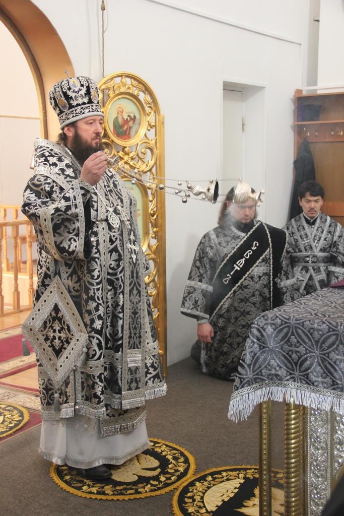 Епископ Усть-Каменогорский и Семипалатинский Амфилохий совершил первую в начавшемся Великом посту Литургию Преждеосвященных Даров святителя Григория Двоеслова в Свято-Андреевском кафедральном соборе города Усть-Каменогорска. Владыке сослужили: архимандрит Спиридон (Теплухин), иеромонах Никодим (Авдеев), иеромонах Силуан (Магилев), настоятель Свято-Зиновьевского храма города Усть-Каменогорска иерей Вячеслав Гутов, иерей Константин Дьяков, протодиаконы Георгий Засыпкин и Андрей Дудник, иеродиакон Мефодий (Шевчук).