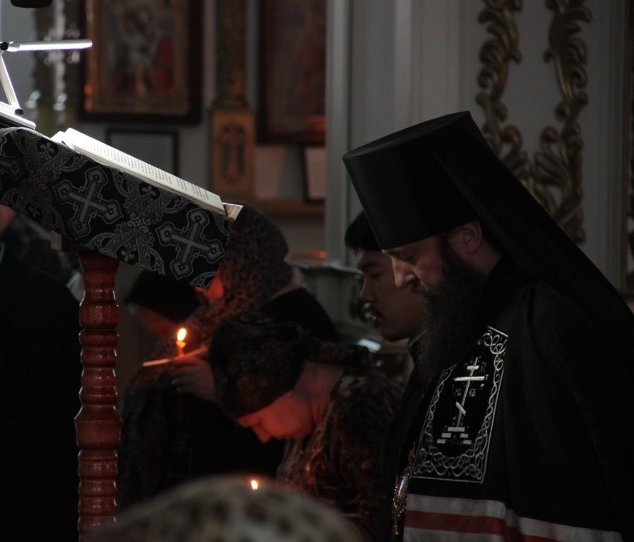 В четверг вечером Преосвященнейший епископ Усть-Каменогорский и Семипалатинский Амфилохий возглавил служение Великого повечерия и завершил чтение Великого покаянного канона преподобного Андрея Критского в Свято-Андреевском кафедральном соборе города Усть-Каменогорска.
