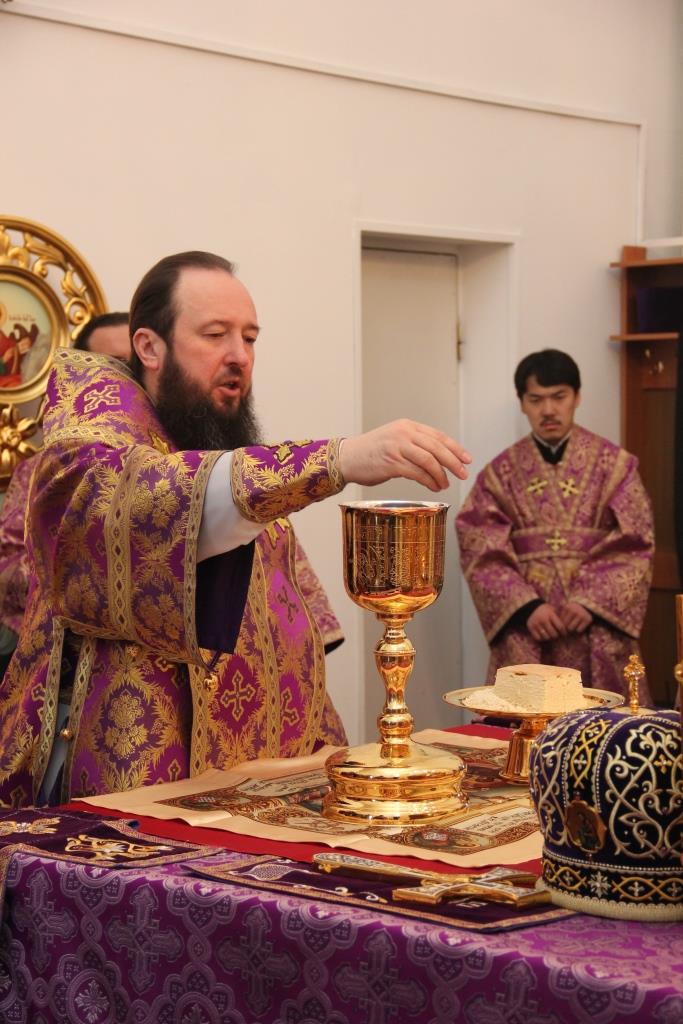 «Сердечно приветствую всех, ныне собравшихся в храме, и поздравляю с завершением первой седмицы Святой Четыредесятницы. Эти первые семь дней, в которые все мы усердно молились за строгими и продолжительными Богослужениями, каялись в грехах и приступали к источнику жизни вечной – Чаше Христовой – стали для нас тем прочным основанием, на который будут опираться и прочие дни Четыредесятницы. Поэтому так важно для христианина провести начало поста в усердном молитвенном подвиге, так важно принять участие в Таинствах Исповеди и Евхаристии. Обращаюсь ныне к тем, кто приступал на протяжении седмицы к Святому Причастию – сохраните этот бесценный дар Христов, сохраните эту благодать Святого Духа, которой Всемилостивый утешал и укреплял вас! Милостью Божией мы завершили только первую седмицу Великого и спасительного поста; впереди еще много дней, в которые Церковь будет звать своих чад к подвигам терпения, смирения, молитвы. И посему, мы должны сберечь тот драгоценный и хрупкий сосуд духовной радости, что вручил нам Творец мира, сохранить его от порочных падений и греховной грязи, ибо этим даром Божиим мы будем укрепляться все время поста, и он будет служить нам утешением».